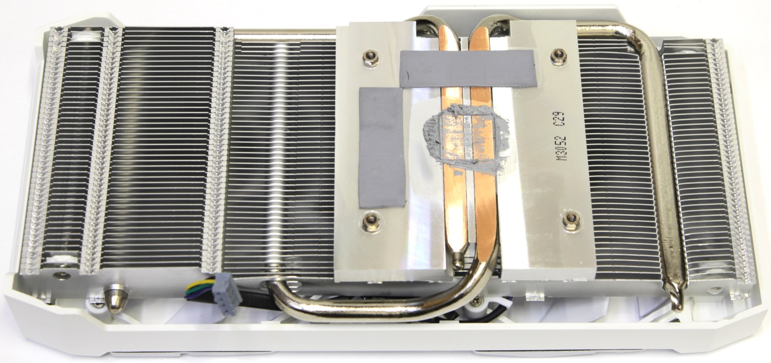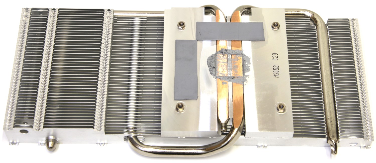 Радиатор предназначен для отвода тепла от графического процессора и чипов памяти. Все остальные компоненты лишь обдуваются проходящим сквозь рёбра воздухом.