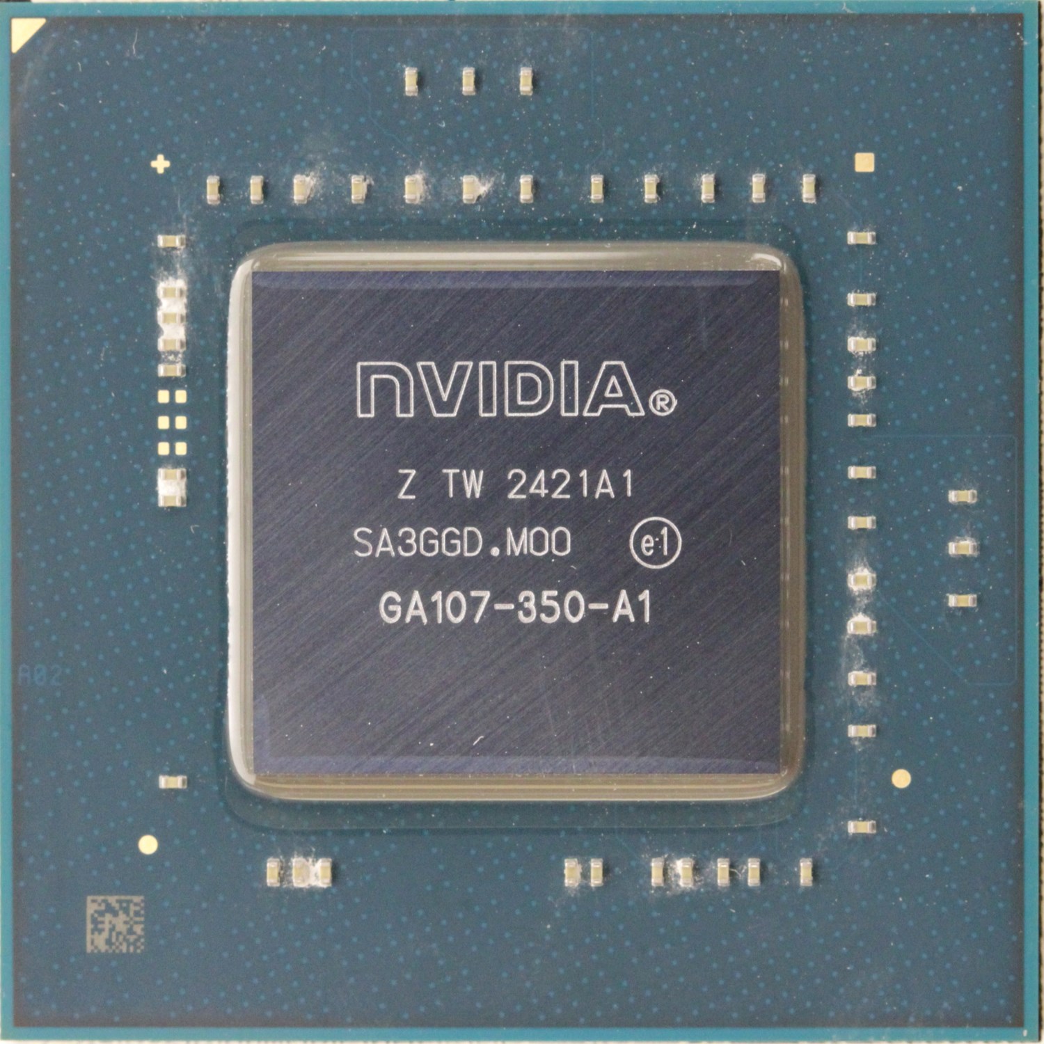 По центру находится графический процессор NVIDIA GA107-350-A1, он же GeForce RTX 3050. Чип изготовлен на 21 неделе 2024 года. У RTX 4060 используется другой графический процессор с маркировкой NVIDIA AD107-400-A1.