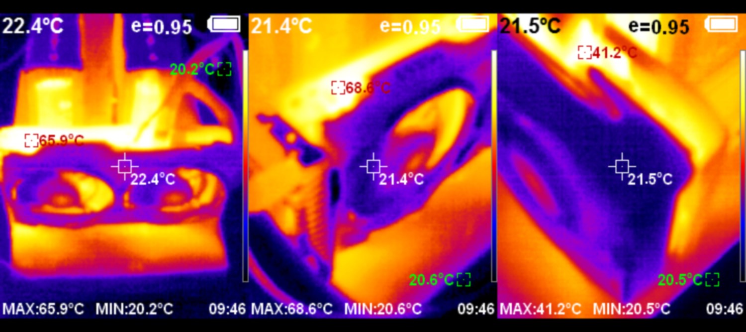 Выше уже упоминалось, что на 100% мощности вентиляторы раскручиваются до 3500 об/мин, шум при этом составляет 46.5 дБ с расстояния 1 м.