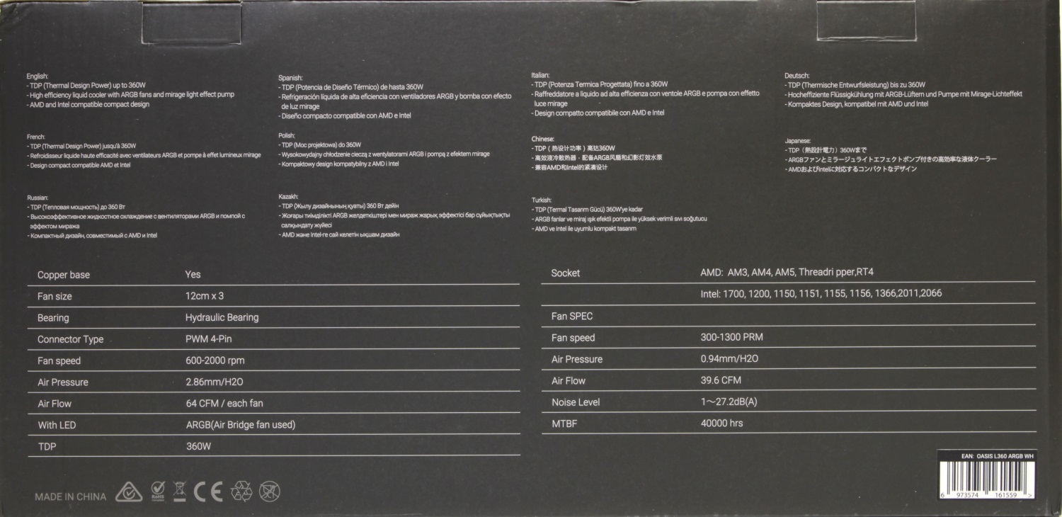 Тем не менее, пока ещё встречаются варианты систем с расширенной поддержкой разных сокетов, и с одним из них я столкнулся совсем недавно. Это Formula V Line Oasis L360 ARGB WH.