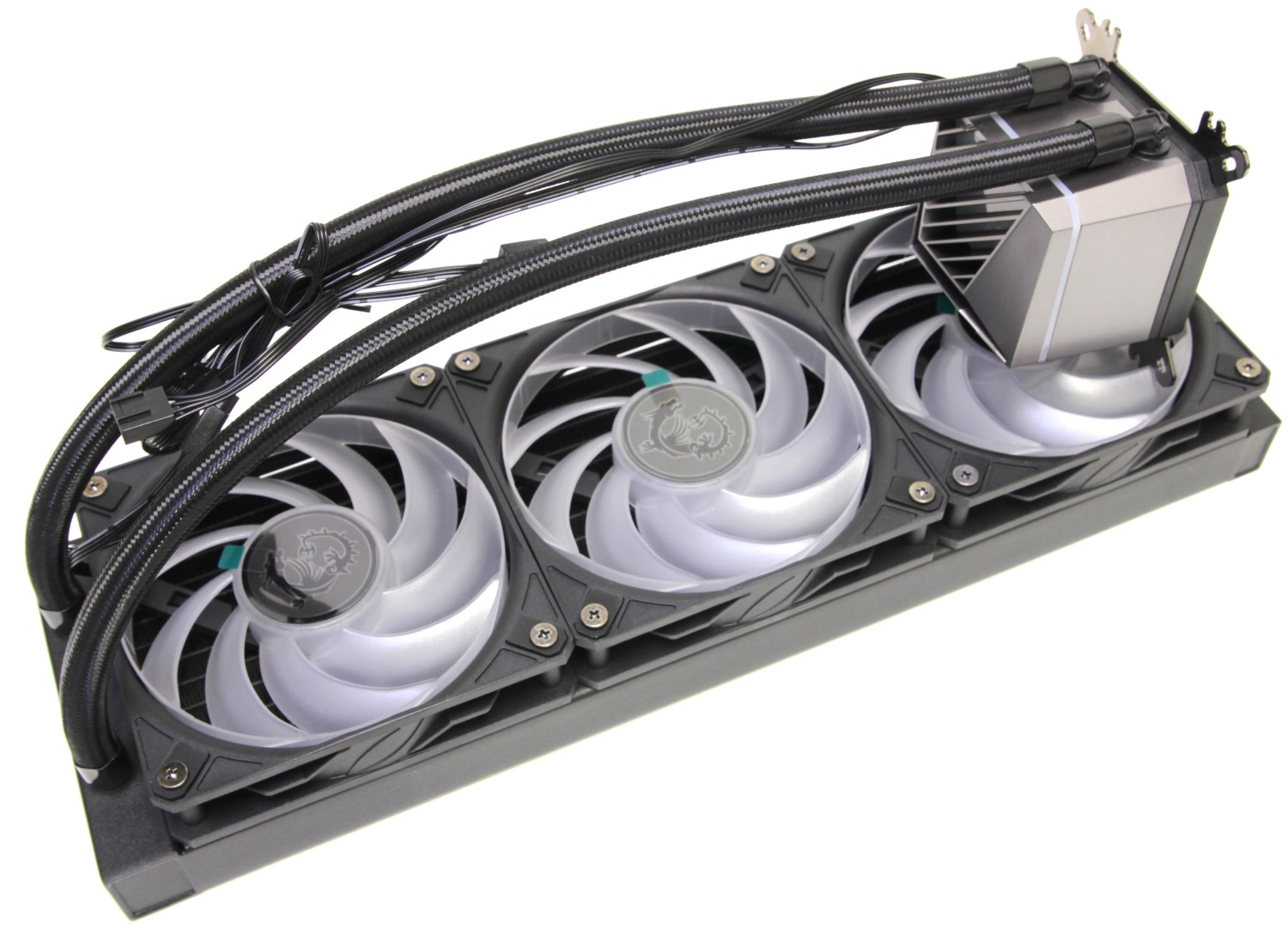 Как видно из названия, это жидкостная система с радиатором, где устанавливаются три вентилятора размера 120 х 120 мм. Не так давно я изучал модель MSI MAG CoreLiquid A13 360, посмотрим, что принципиально нового предлагает MSI в этой версии.