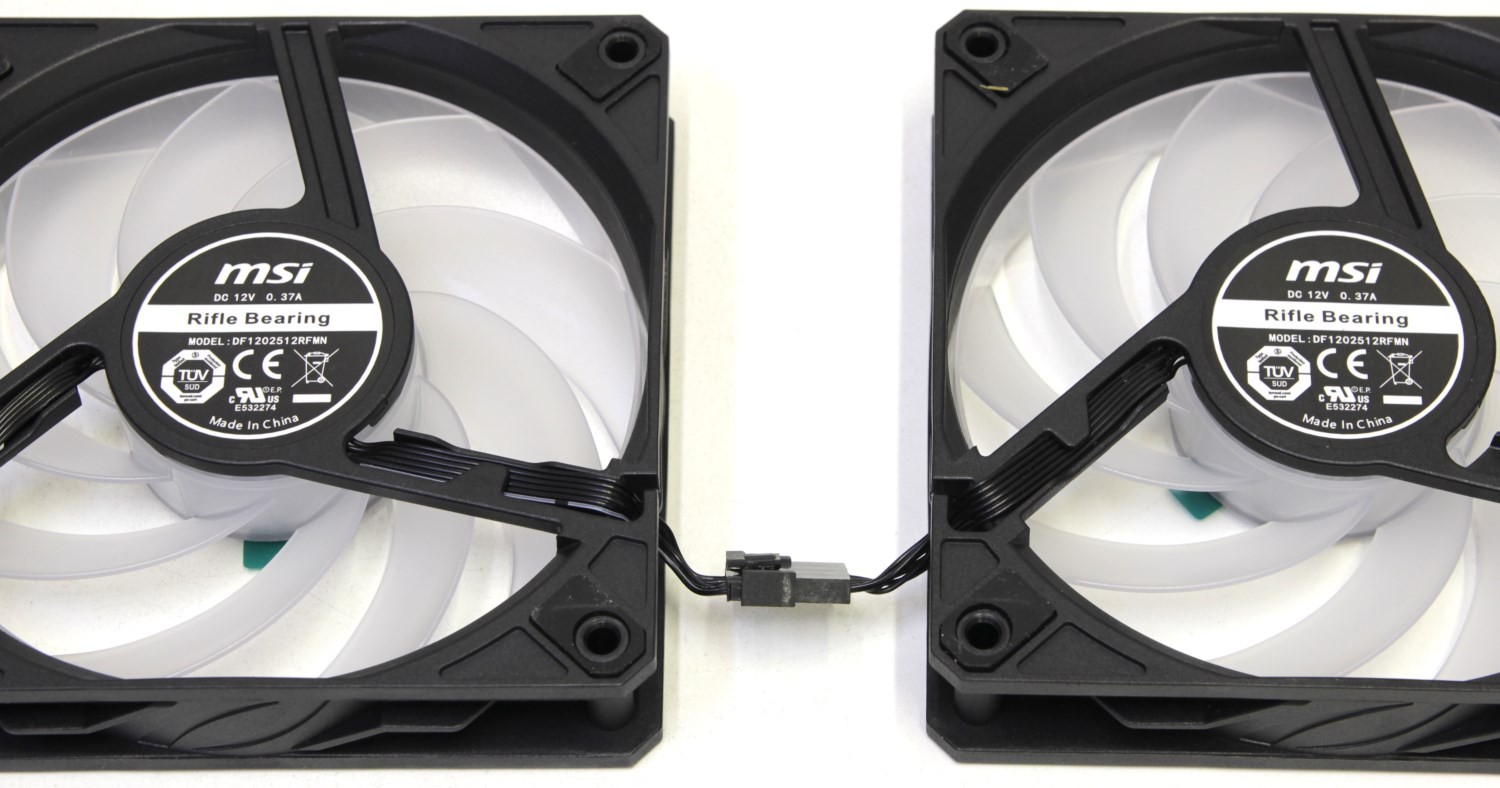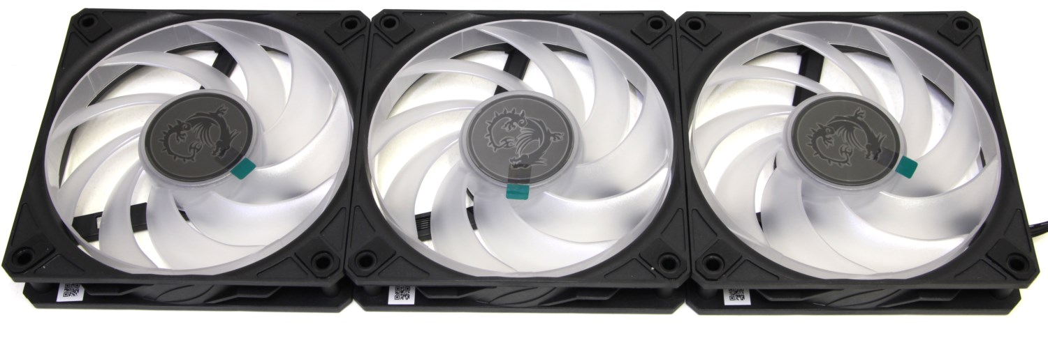 Обычно такие вентиляторы достаточно тихие, но здесь они могут раскручиваться вплоть до 2050 об/мин и на такой скорости уже начинают заметно шуметь. На модели MSI MAG CoreLiquid A13 360 применяются аналогичные устройства, но максимальная скорость там немного ниже. Однако происхождение шума не только и не столько из-за вентиляторов, основной причиной, на мой взгляд, является плотность рёбер радиатора, которая создаёт сопротивление воздушному потоку.