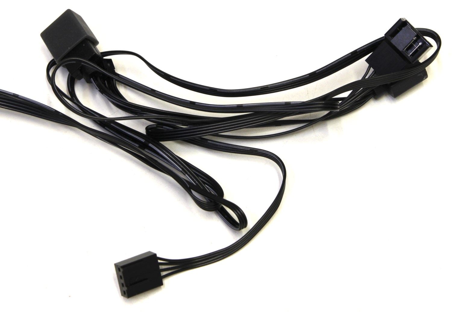 Каждый вентилятор оборудован шестиконтактным коннектором, и они соединяются последовательно друг с другом так, что из последнего, расположенного ближе к трубкам, идёт только один кабель, который далее раздваивается на 4-Pin FAN и 3-Pin ARGB. Плюсы очевидны. Нет огромного пучка проводов. Однако, при этом просто так один вентилятор уже не поменяешь. Никаких адаптеров и переходников в комплекте нет.