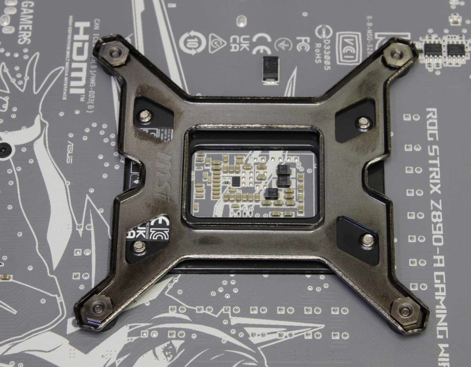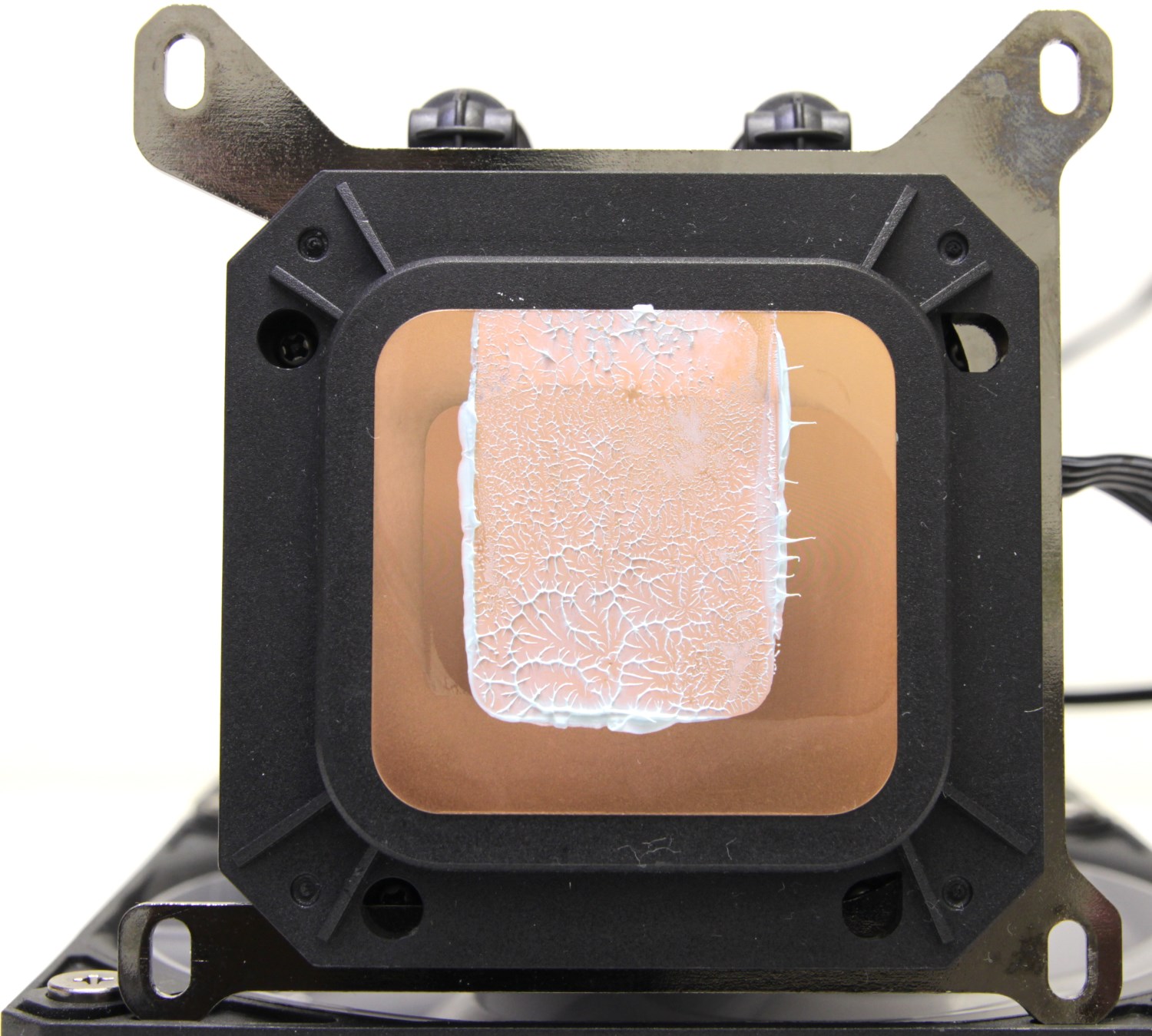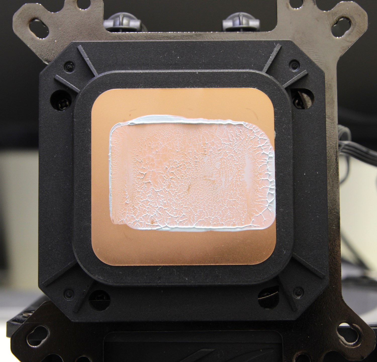 Поэтому для более эффективного охлаждения рекомендуется смещать основание водоблока. Здесь производитель об этом подумал и поэтому предусмотрел специальную рамку. Работает она или нет, мы проверим во время тестирования. После тестирования проверяем отпечаток.