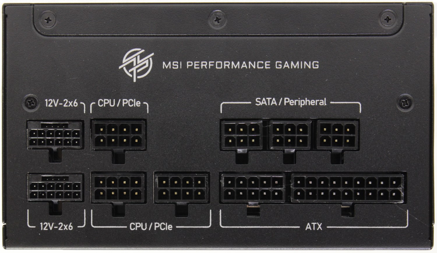 Многим такой мощный блок питания просто не нужен. Обычно пользователь прикидывает показатели потребления связки процессор+видеокарта, берёт небольшой запас, чтобы БП не работал на пределе, и выбирает подходящую модель. Если позволяют финансовые возможности, можно ещё обратить внимание на стандарт энергоэффективности 80 Plus. Золотой серединой сегодня является как раз 80 Plus Gold. Даже в спецификации к видеокарте RTX 5090 обычно указан блок на 1000 Вт. Именно такого номинала я нашёл устройство с двумя разъёмами 12VHPWR (12V-2х6). Модель называется MSI MPG A1000GS PCIE5.