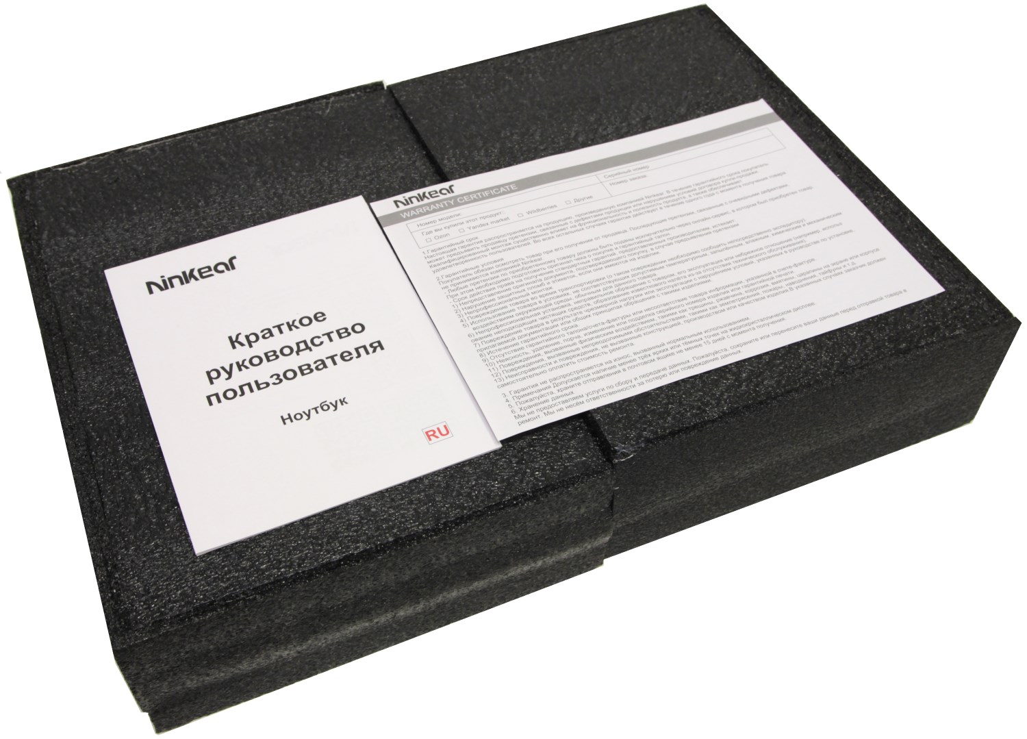 Сам ноутбук упакован в две половинки каркаса из вспененного полиэтилена тёмно-серого цвета. Внутри ещё находится достаточно плотный чехол из нетканого материала, который также в первое время можно использовать для переноски. Да, это простой конверт без ручек, но так хотя бы устройство не поцарапается какое-то время, пока пользователь не купит сумку.