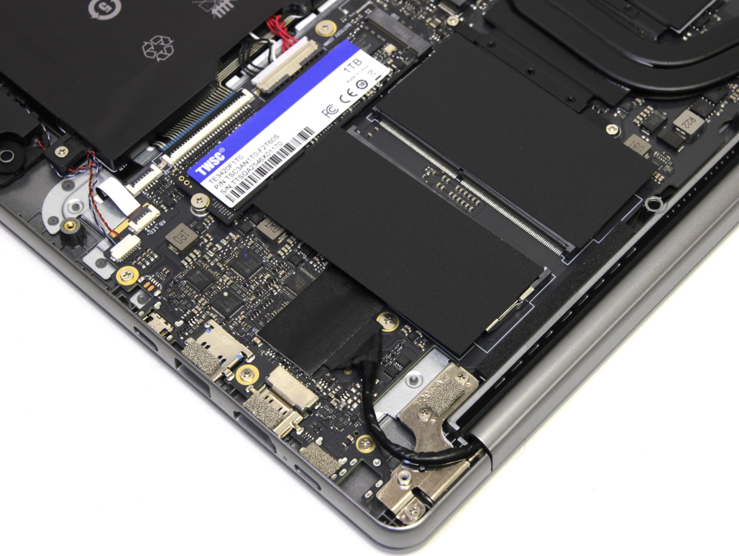 Возможности апгрейда есть и весьма неплохие. Можно заменить SSD M.2 накопитель, установить ещё один, есть два слота под память типа SODIMM DDR4 и можно установить 64 Гбайт, также можно заменить беспроводной модуль.