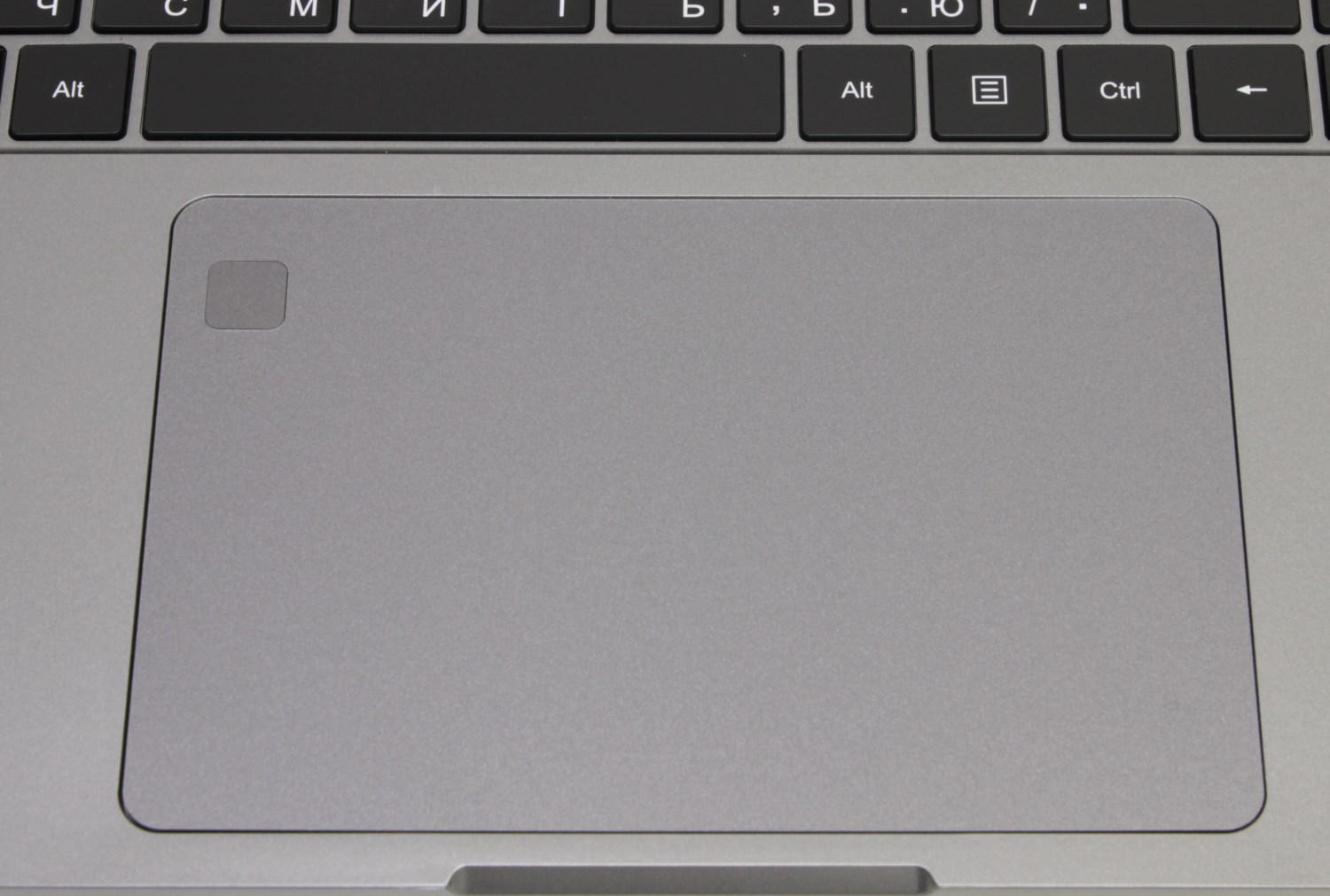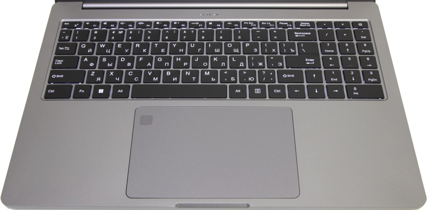Ноутбук не совсем маленький и поэтому здесь используется хорошая полноразмерная клавиатура с цифровым блоком. Также клавиатура оборудована подсветкой, управлять которой можно с помощью Fn + F9. В топкейсе есть вырезы под кнопки и тачпад. Последний достаточно крупный, а ещё в нём есть небольшой квадратик сканера отпечатков пальцев.