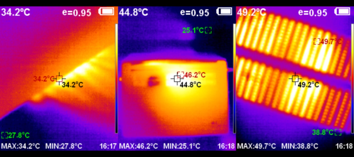 Можно заметить, что нагрев неравномерен, основная часть горячего воздуха выходит в предназначенном для этого месте.