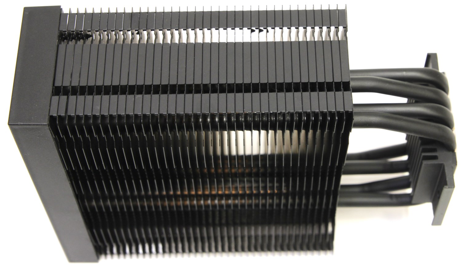 Верхняя пластиковая крышка необходима больше для красоты, чтобы скрыть концы тепловых трубок. В данном случае радиатор вместе с ними выкрашен в чёрный цвет.