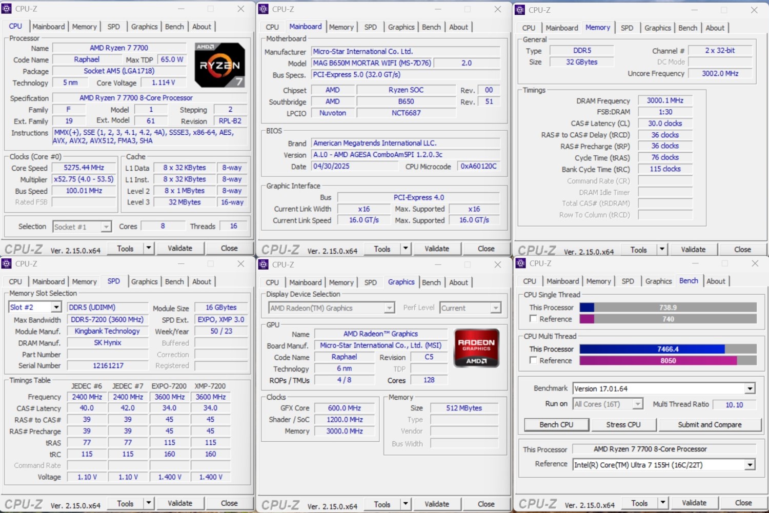 - Память: 2 x 16 Гбайт DDR5-7200 @ DDR5-6000 KingBank (SKhynix);