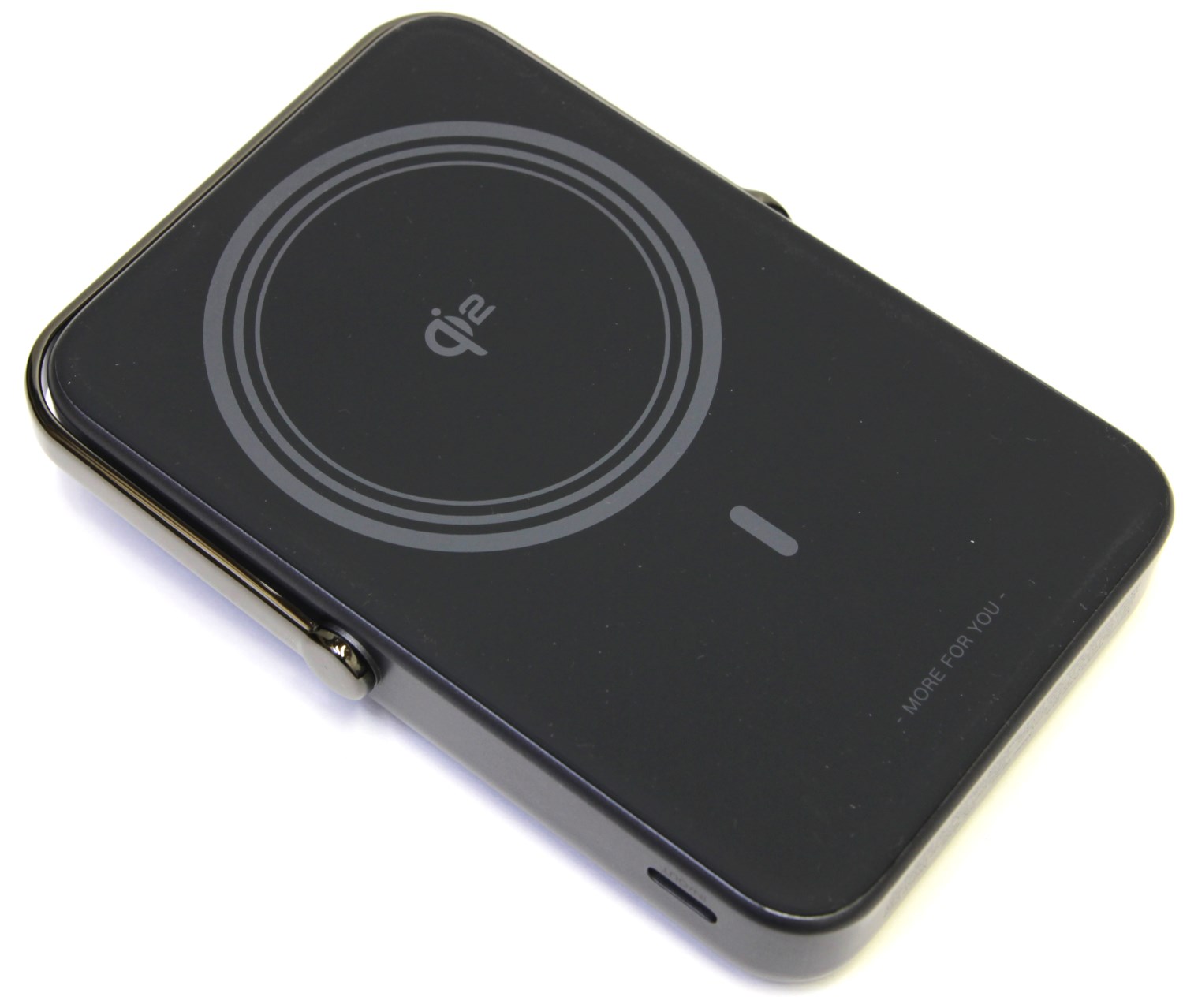 Тут же указана ёмкость данного устройства, которая составляет 10 000 мАч. В правом нижнем углу есть значок, который указывает на стандарт беспроводной зарядки Qi2. Если коротко, то это Qi + MagSafe от Apple. Соответственно такой вариант отлично подходит для беспроводной подзарядки смартфонов Apple.