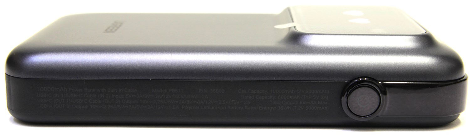 С одного торца находится разъём USB Type-C для зарядки самого пауэрбанка и к нему же можно подключить внешние гаджеты для подзарядки. Получается, что данный порт универсальный и выполняет сразу две функции.