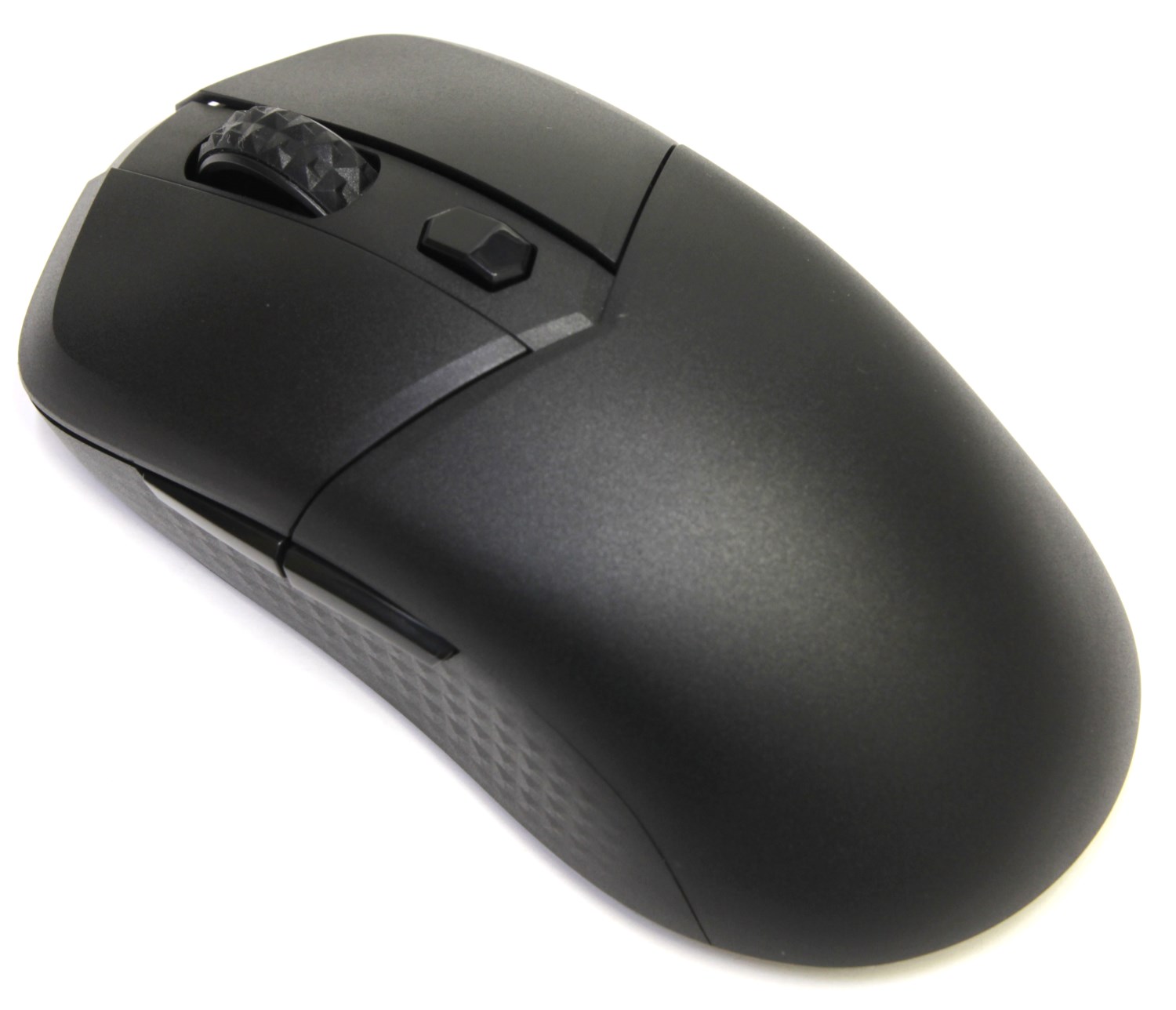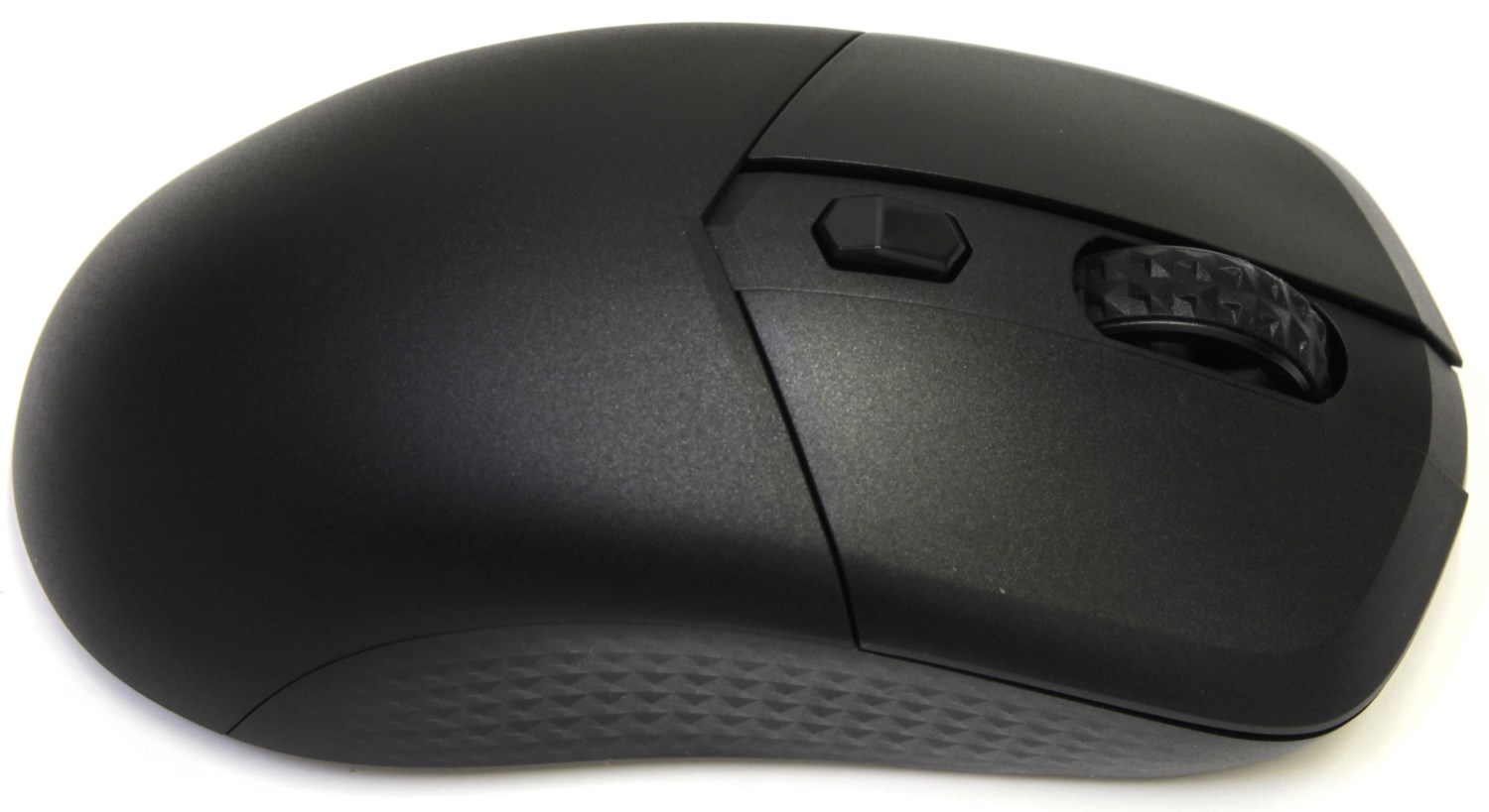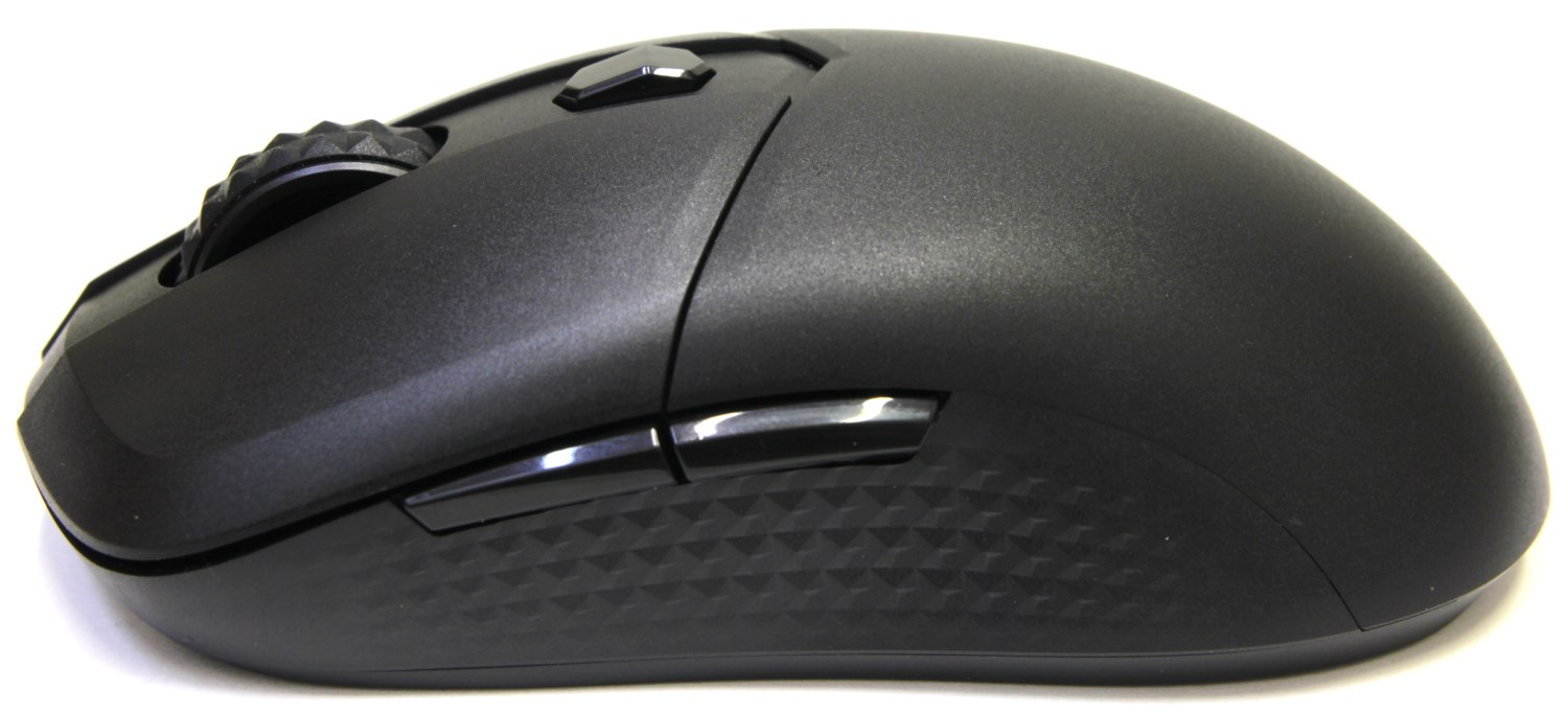 Корпус мыши не скользкий за счет матовой поверхности сверху и сбоку. Кисть хорошо лежит и почти не потеет. Больше всего понравились узорчатые боковины. Они надёжно фиксируются даже влажными пальцами. Колесо прокрутки соответствует этому ромбовидному стилю и смотрится брутально, как будто протектор был разработан для бездорожья. Прокрутка чёткая без ошибок и промахов, но и без громкого треска. Не могу сказать про долговечность существующих переключателей, но здесь они производства компании Kailh, а не привычный многим Omron. Про ресурс ничего не сказано, поэтому нужно надеяться на лучшее.