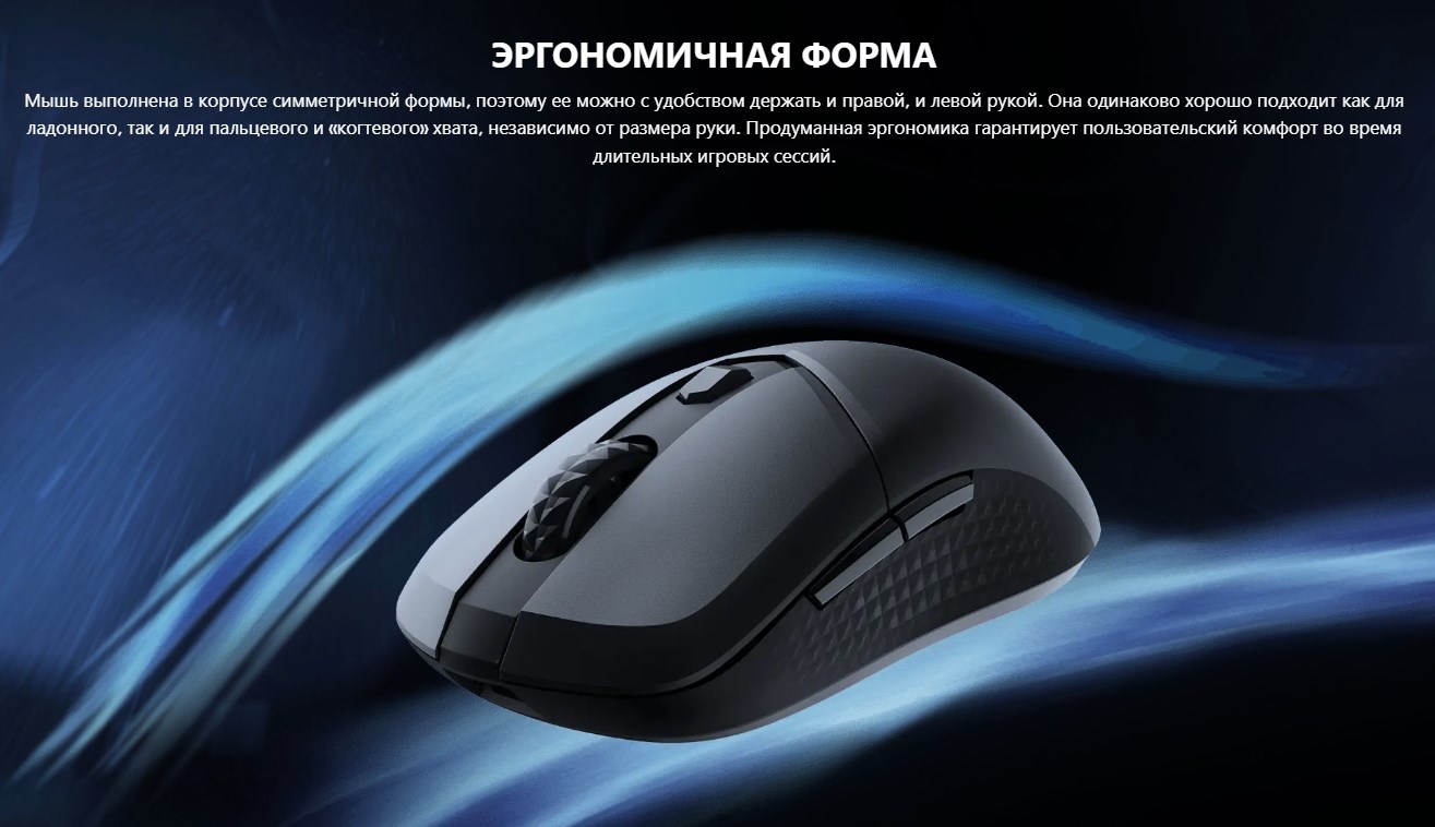 Поэтому мышь можно считать условно универсальной для разных рук. Нет какой-то особой эргономики под правую руку. Колёсико находится по центру, там, где должно быть.