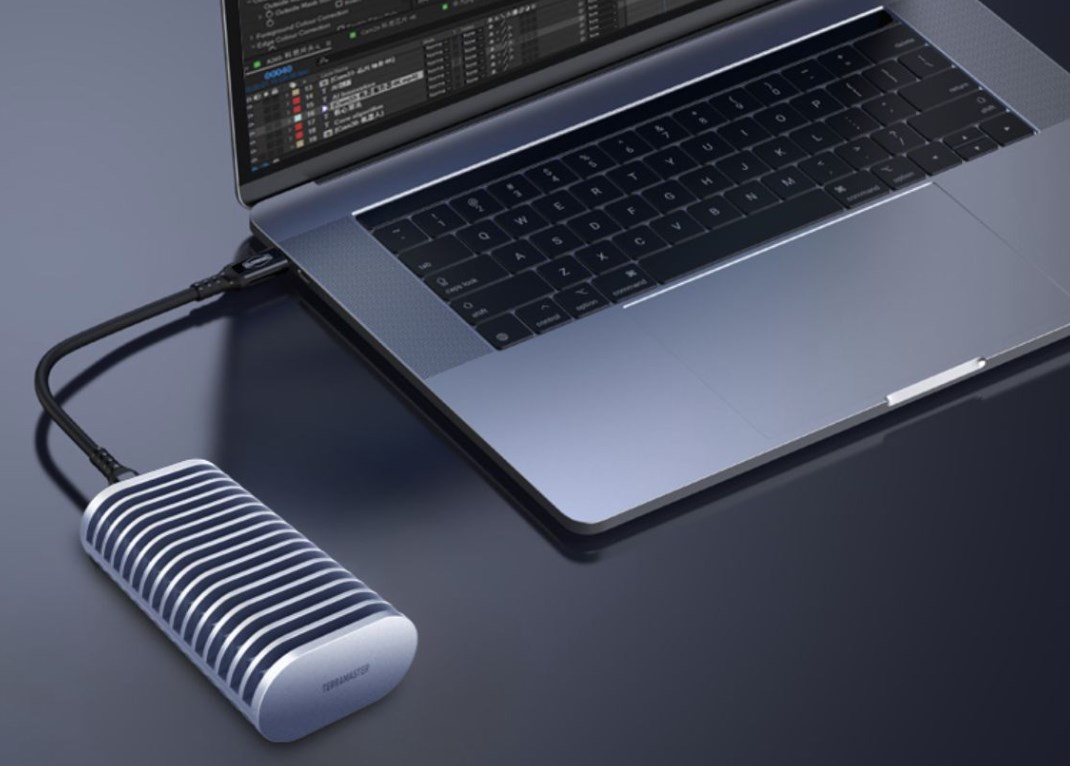 Также есть небольшие нюансы с используемыми контроллерами. Если на коробке накопителя написано 7000 МБ/с, это не значит, что такая скорость записи будет на всём объёме. Поэтому тут важно выбрать подходящее устройство, которое не будет заметно снижать скорость после заполнения SLC кэша. С этим тоже понятно, а вот какой выбрать сам контейнер для работы? С одним устройством я уже ознакомился и в целом оно мне понравилось. Там использовалось активное охлаждение. А есть ли что-то с пассивным? Оказалось, что есть, такая модель называется TerraMaster D1 SSD Plus.