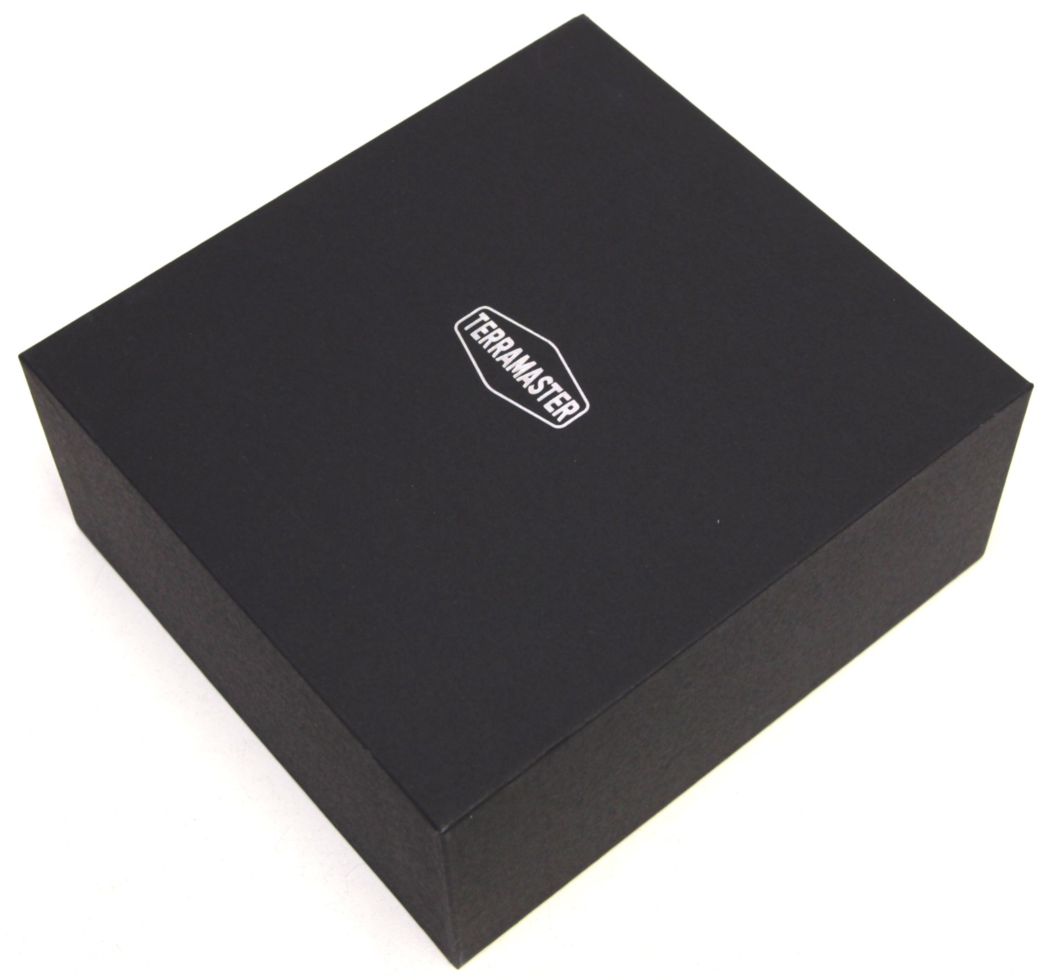 Внутри оболочки находится прочная чёрная картонная коробка. На ней нет никаких обозначений кроме логотипа TerraMaster сверху. Внутри есть разделение на два отсека. В одной части покоится ещё одна небольшая коробка с аксессуарами, а рядом каркас из вспененного полиэтилена, где в белом пакете скрывается сам контейнер. Сверху всего этого лежит конверт с инструкциями.
