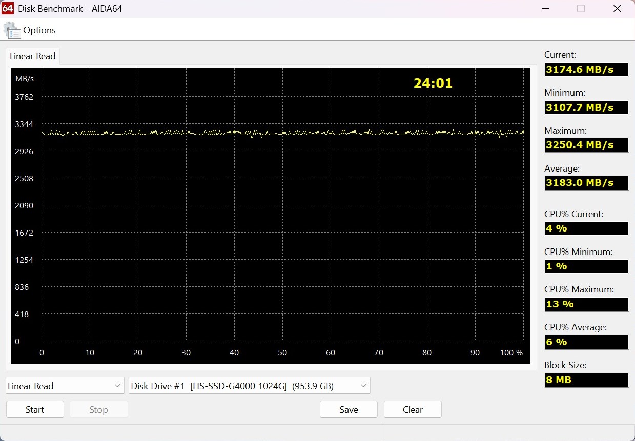AIDA64 Disk Benchmark (линейное чтение):