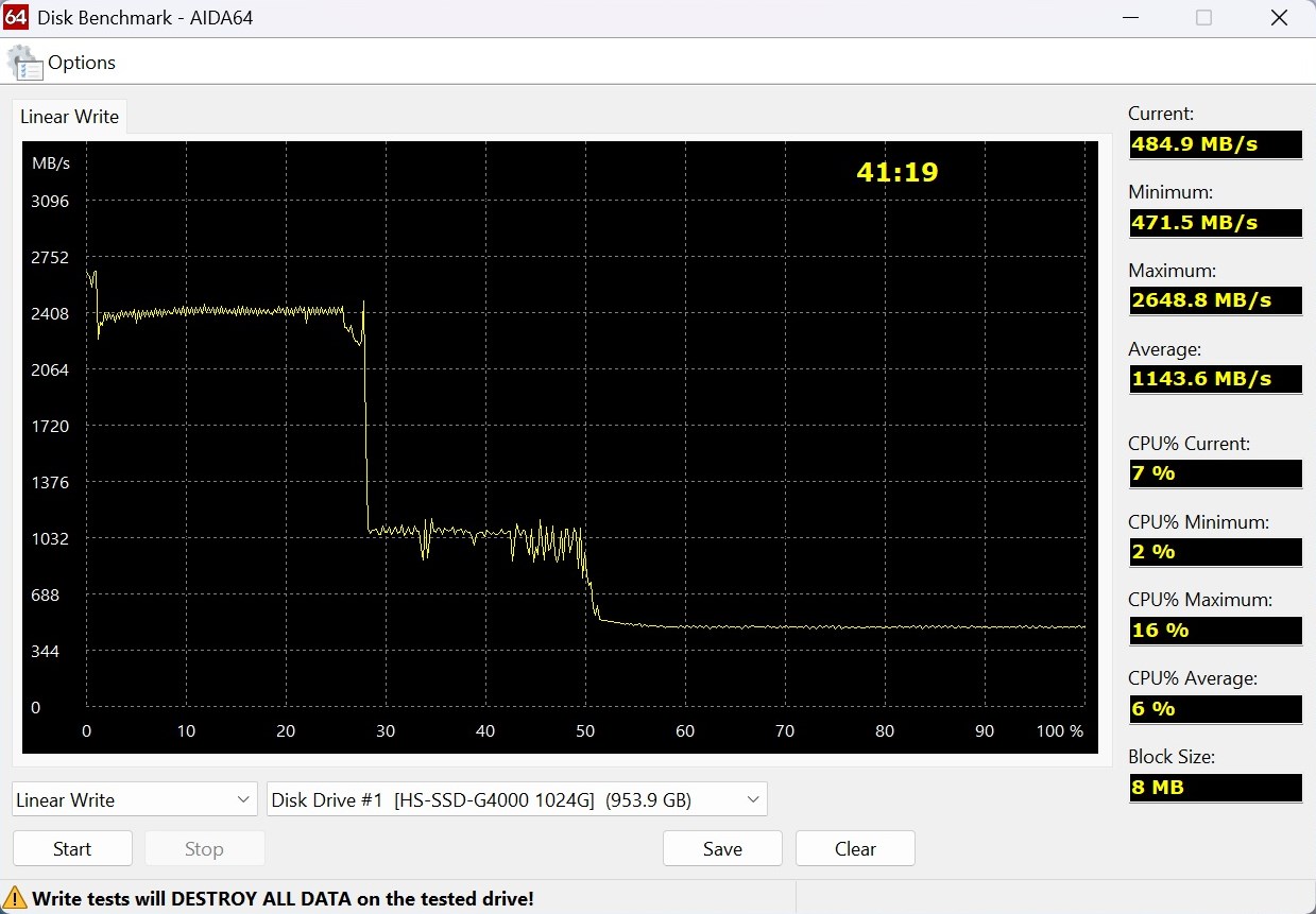 AIDA64 Disk Benchmark (линейная запись):