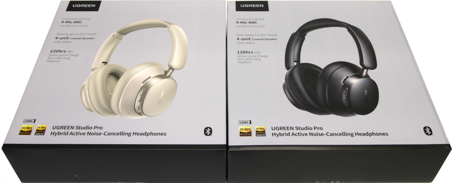 Недавно я выбирал гарнитуры своим знакомым и требовалось две одинаковых. Поэтому я выбрал одну модель, но в двух разных цветовых решениях, чтобы их можно было отличать. Устройство называется Ugreen Studio Pro.