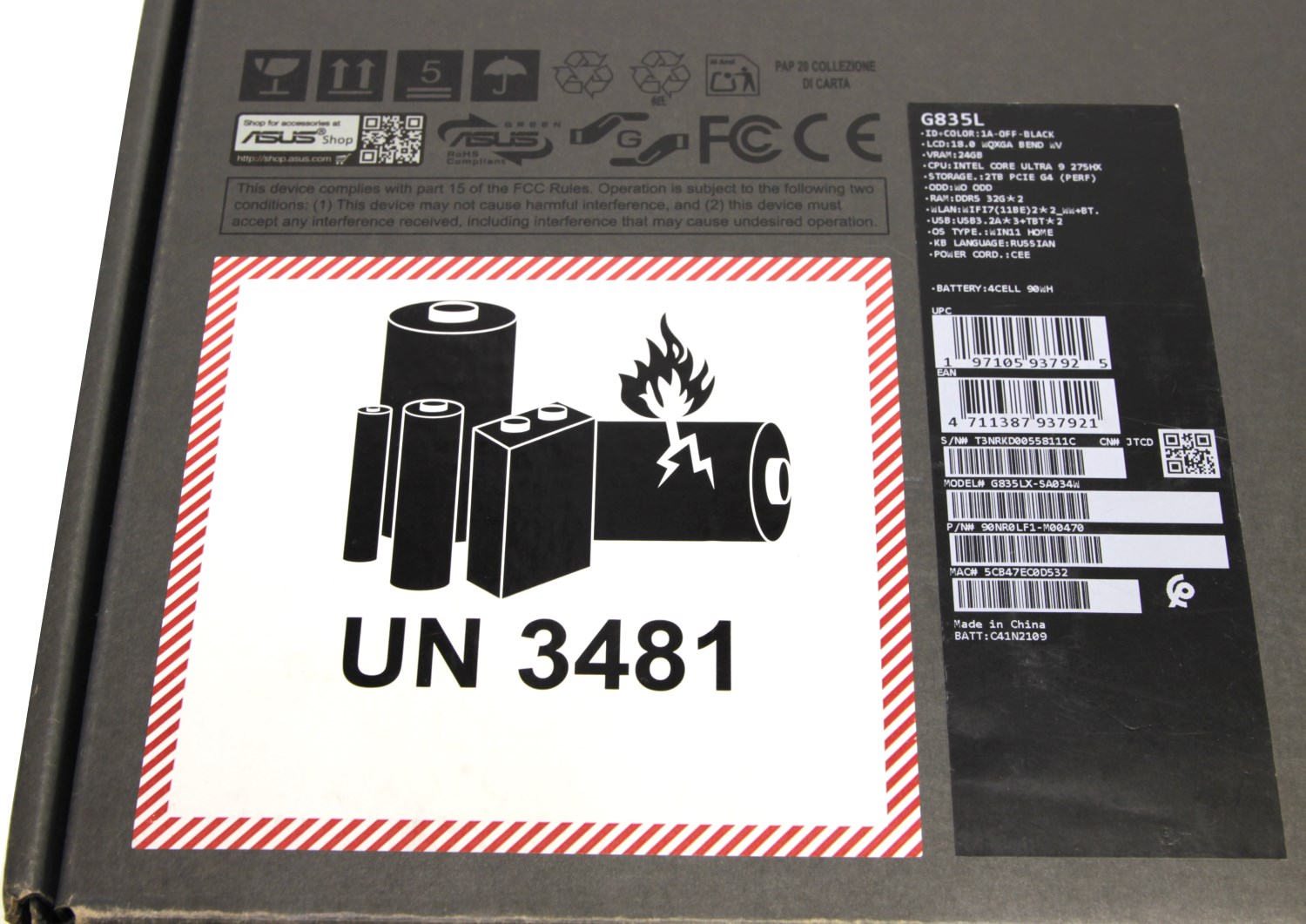 На противоположной поверхности есть только стандартное предупреждение об аккумуляторах и наклейка с указанием модели и комплектации.