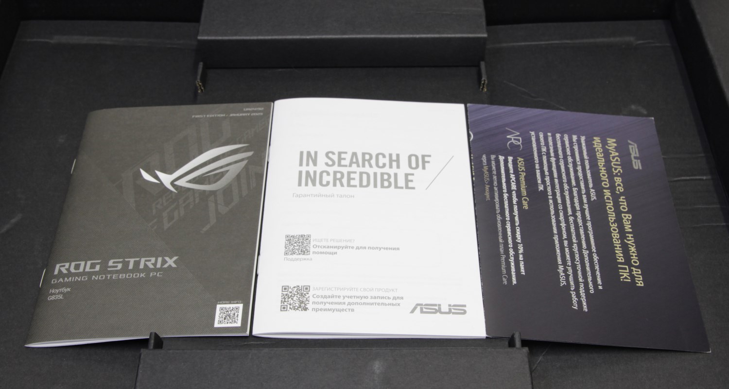 Под ноутбуком скрыта ниша, где вставлена ещё одна небольшая коробка. В ней спрятаны инструкции.