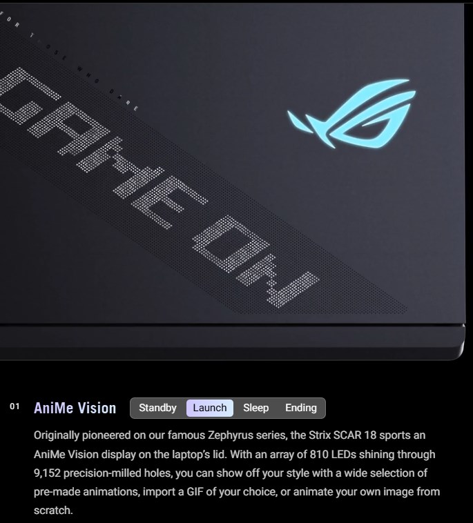 Надо отметить, что тут она шагнула немного дальше. Здесь используется 810 светодиодов и тысячи миниатюрных отверстий в дисплейной крышке ноутбука, чтобы создавать уникальные световые эффекты.