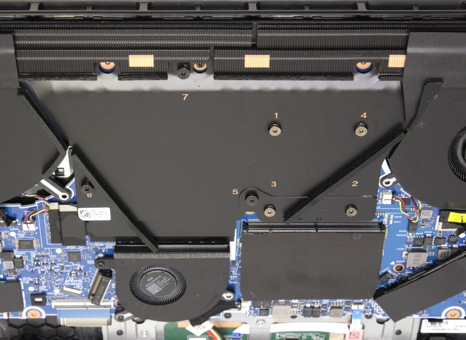 На ней можно заметить винты с цифрами рядом. Это порядок крепления винтов, но при снятии или установке – не сообщается. Ещё тут можно заметить сразу три вентилятора с умопомрачительной скоростью вращения. Два покрупнее разгоняются до 5700 об/мин, а маленький немного пошустрее – 6900 об/мин.