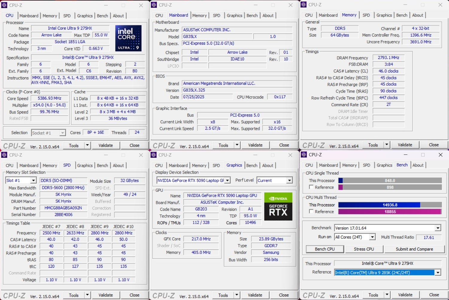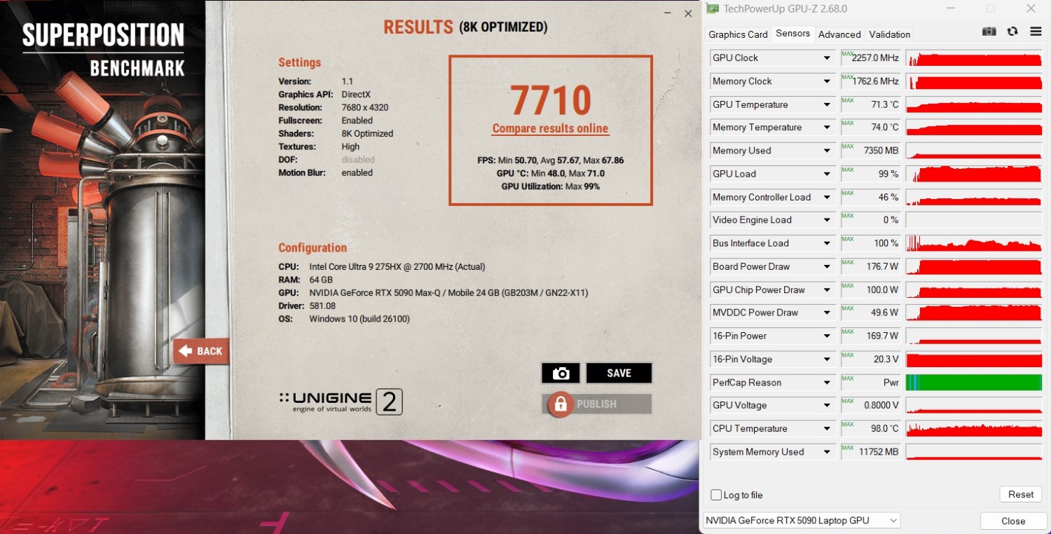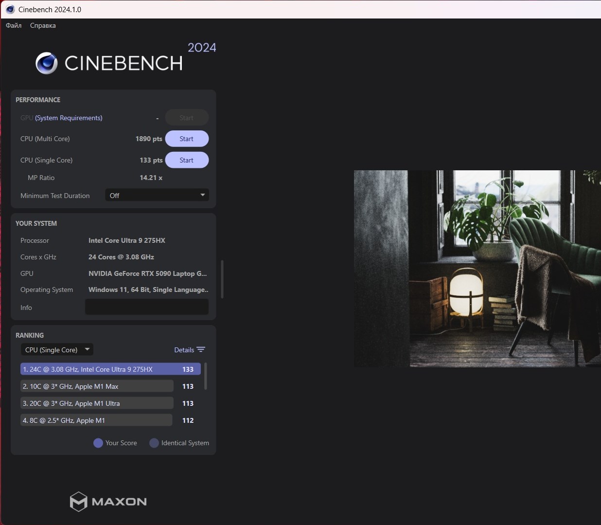 Разумеется, есть и много общего. Например, используется мощный процессор Intel Core Ultra 9 275HX поколения Arrow Lake. У него 24 ядра и 24 потока. Только процессор отдельно в режиме «Турбо» ограничен лимитами в PL2 = 175 Вт. Однако в режиме полной нагрузки процессора и графического чипа потребление может распределяться как 80 + 175 Вт в ручном режиме настройки, а с предустановкой «Турбо» – 55 + 175 Вт. Об этом заявляет сам производитель, а мы можем лишь проверить это на практике. Забегая немного вперёд, могу отметить, что это соответствует действительности.