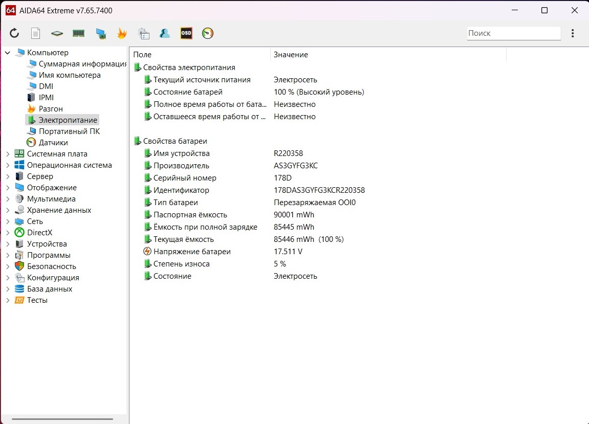 | Аккумулятор | 90 Вт*ч, 4 ячейки, литий-ионный |