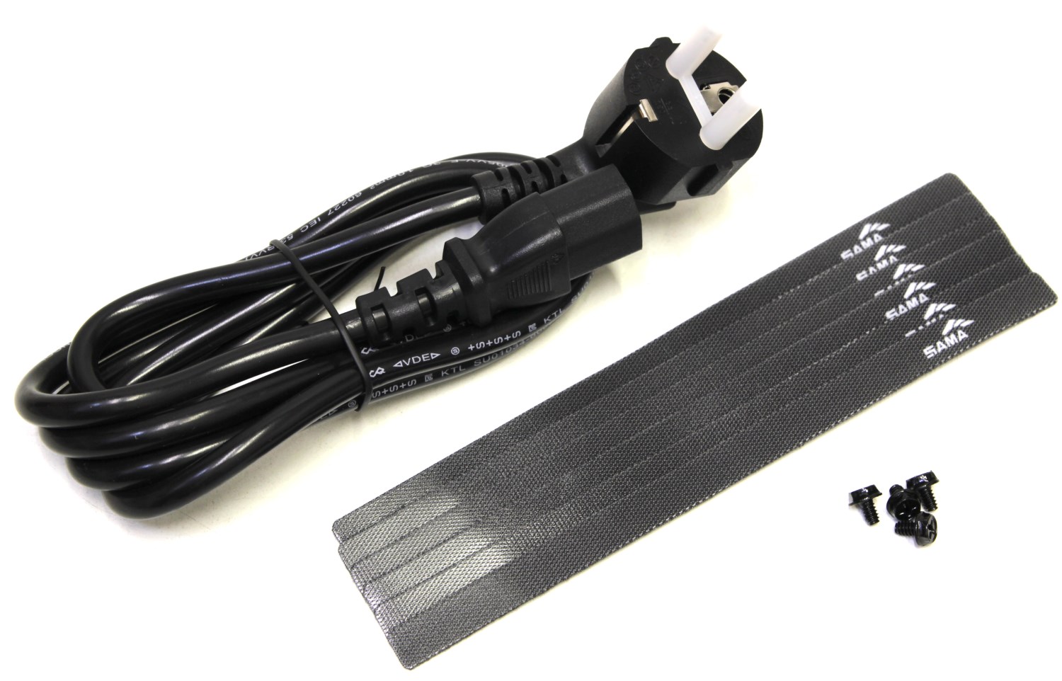 В комплекте также есть силовой кабель с евровилкой, четыре крепёжных винта и стяжки на липучке.