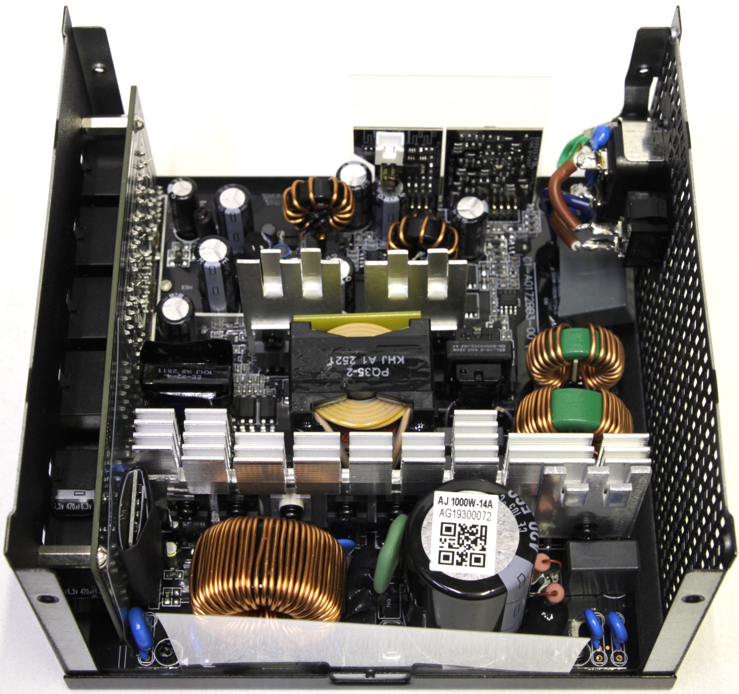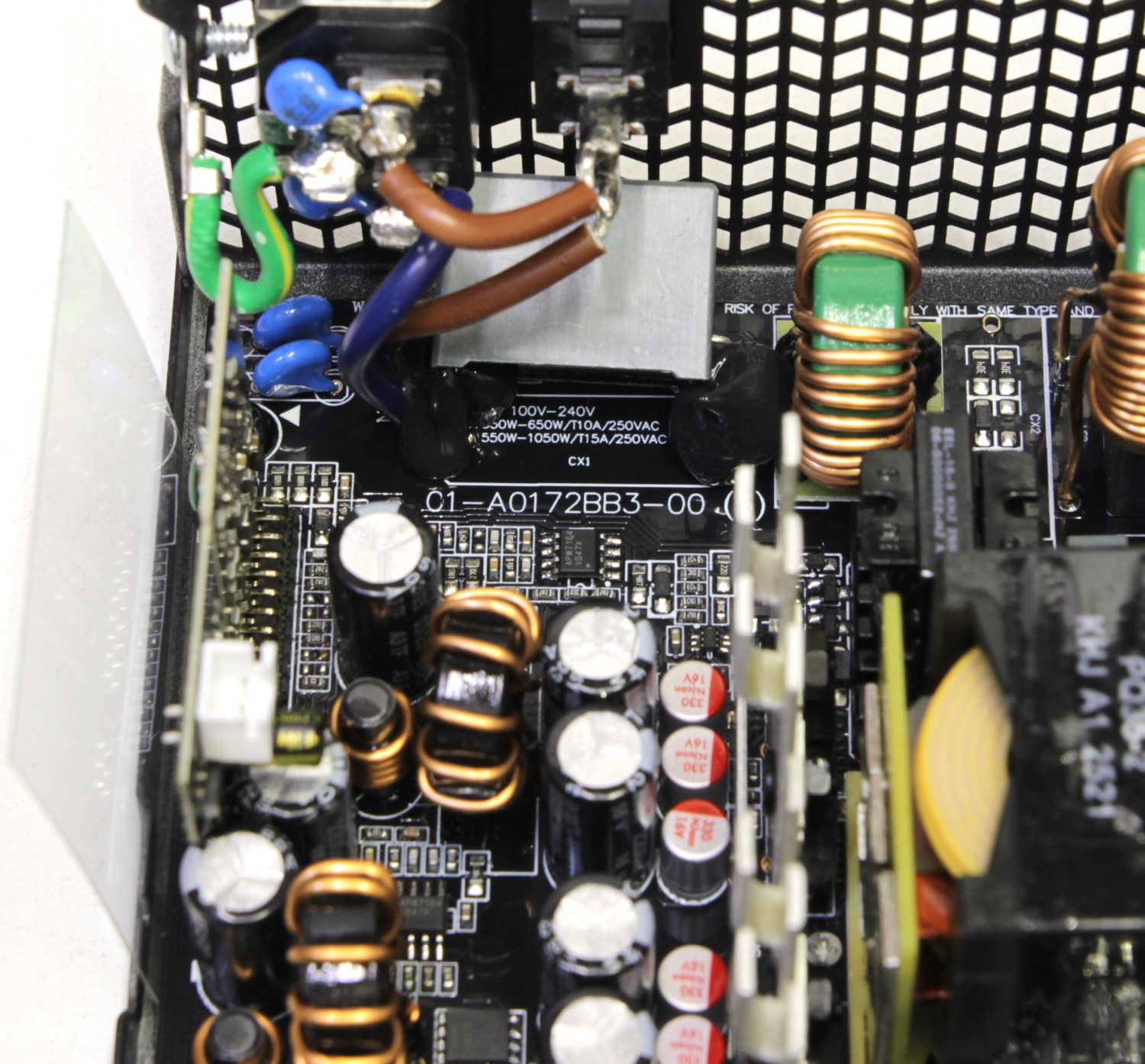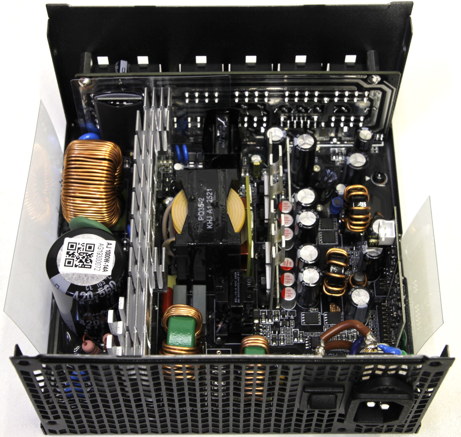 К сожалению, я начал знакомство с этим блоком, когда именно по этой модели ещё ничего не было, но наткнулся на аналог в виде Enermax Revolution D.F.12. Общего не так много. Только один и тот же OEM-производитель, похожая топология и набор элементной базы, а вот печатные платы совершенно разные и соответственно все компоненты расположены немного иначе. На плате есть информация, что она используется для создания блоков мощностью от 550 до 1050 Вт.