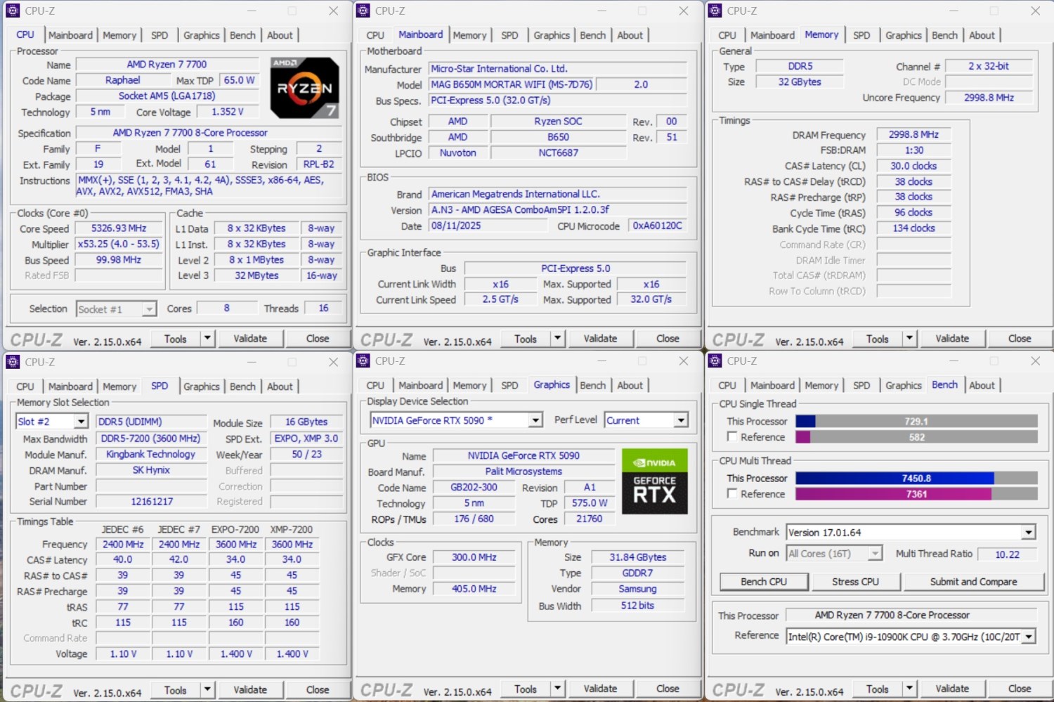 - Память: 2 x 16 Гбайт DDR5-7200, KingBank (SKhynix A-Die);
