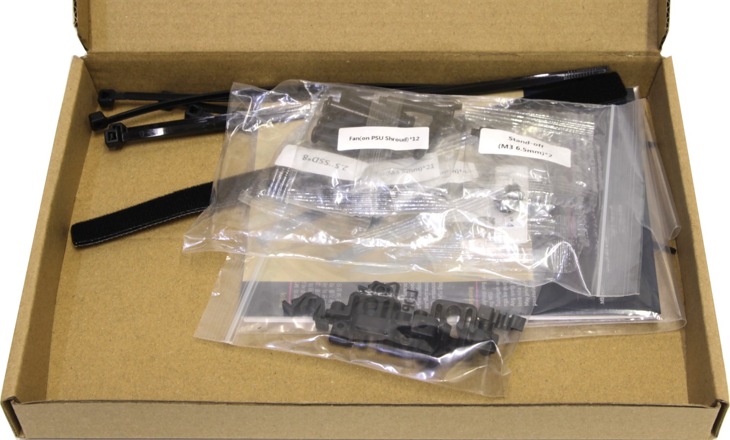 Извлечение корпуса из упаковки не вызывает проблем. Комплект поставки скрывается в небольшой картонной коробке, установленной в нише защитного каркаса.