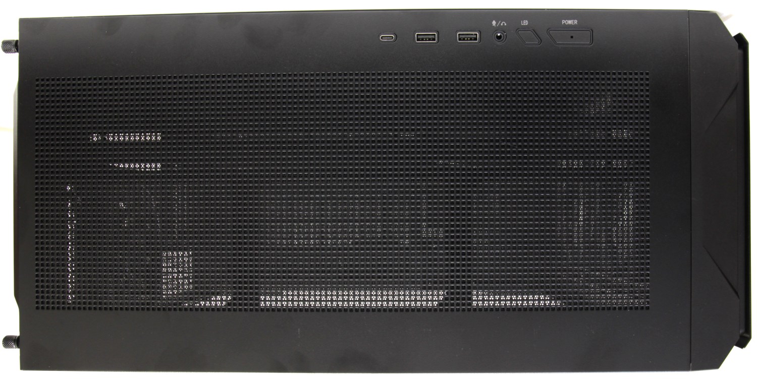 Сверху корпус очень хорошо вентилируется. Для этого здесь предусмотрена огромная панель с перфорацией, за которой находится тонкая сеточка с магнитной полоской по периметру. Она легко снимается и очищается.