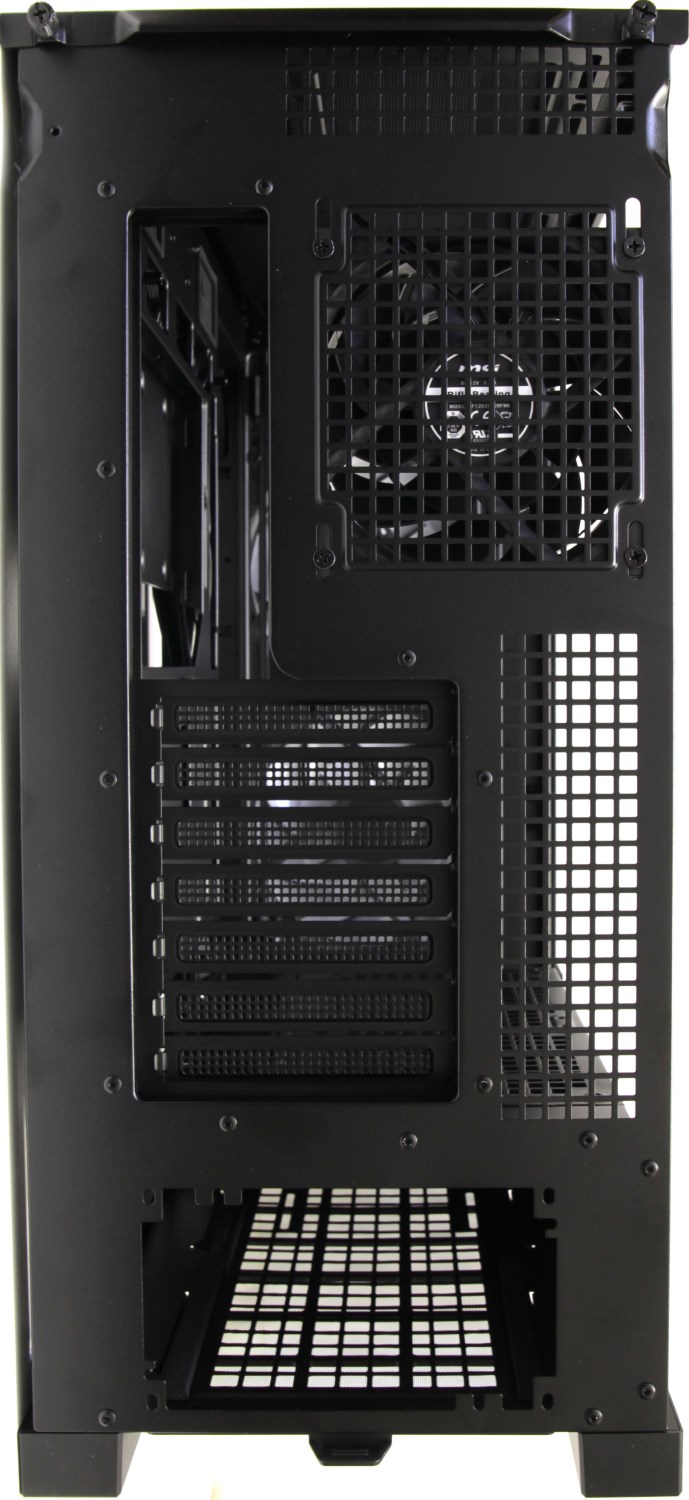 Выше находится вырез для заглушки задней панели материнской платы и заглушки слотов расширения. Последние все сделаны съёмными, причём после их демонтажа перегородок не остаётся, что достаточно удобно.