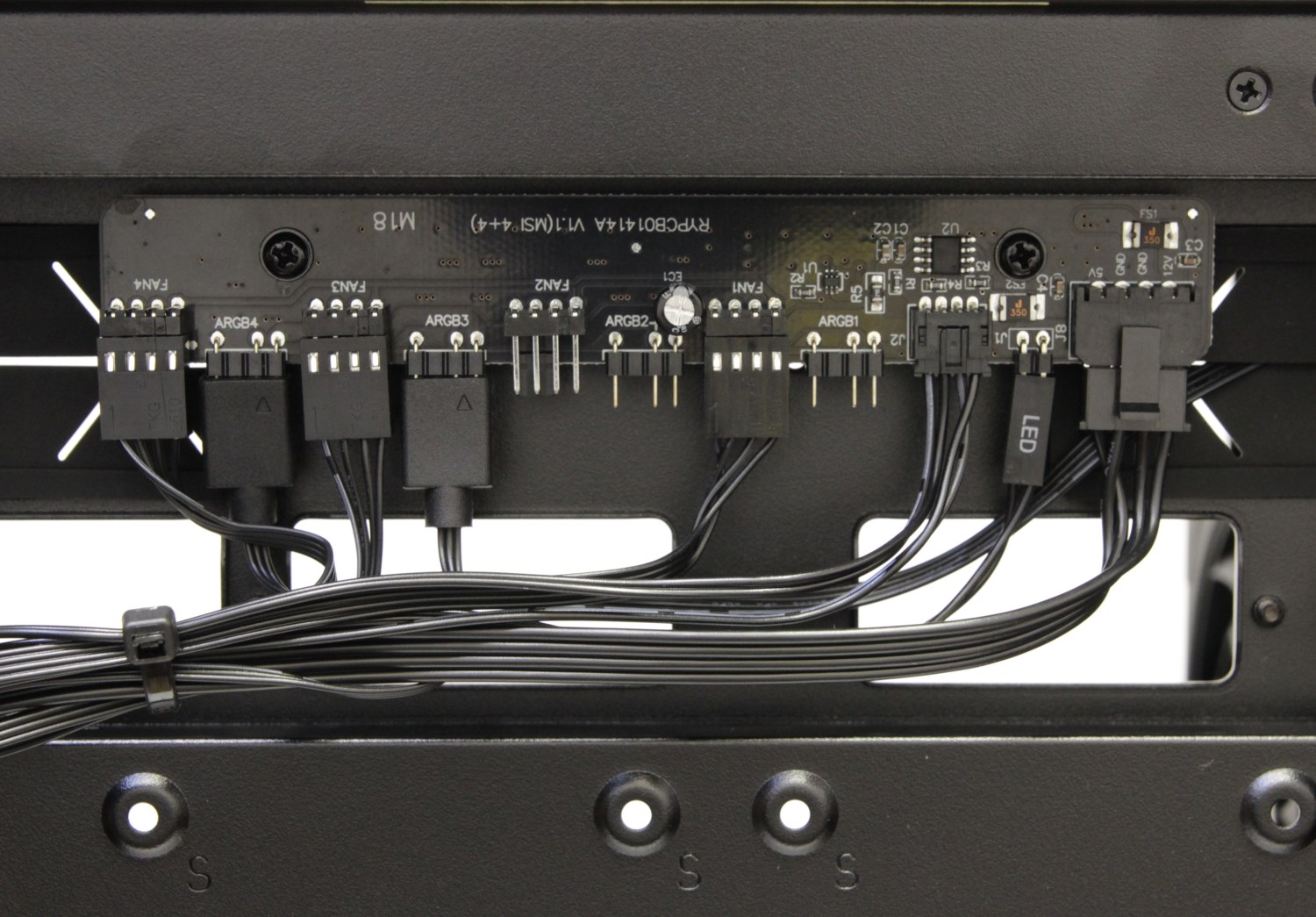 Ещё здесь предусмотрен отдельный хаб со своим контроллером для управления скоростью вращения вентиляторов через ШИМ и эффектами подсветки. Он предлагает несколько собственных режимов работы подсветки, а также синхронизируется с материнской платой. Хаб закреплён на внутренней панели, но ничего не мешает его снять и перенести в другое место.