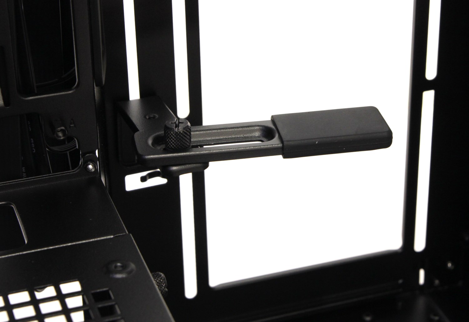 Осталось рассказать лишь про держатель видеокарты, который представляет собой простую перекладину с поворотным соединением и резиновым наконечником.