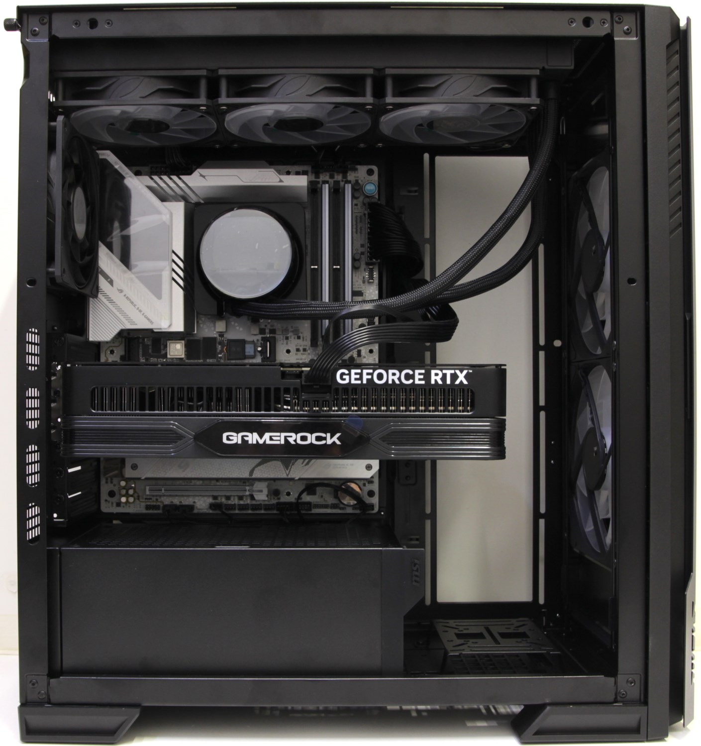 MSI MPG Velox 300R Airflow PZ – добротный корпус с хорошей вентиляцией и поддержкой материнских плат в модификации Project Zero, когда разъёмы расположены с обратной стороны. Корпус не самый бюджетный и поэтому предназначен скорее для высокопроизводительных сборок с огромным бюджетом. RTX5090 сюда влезет и даже будет хорошо охлаждаться, а для процессора лучше использовать систему жидкостного охлаждения, что я попытался воссоздать в действительности при тестировании данного устройства.