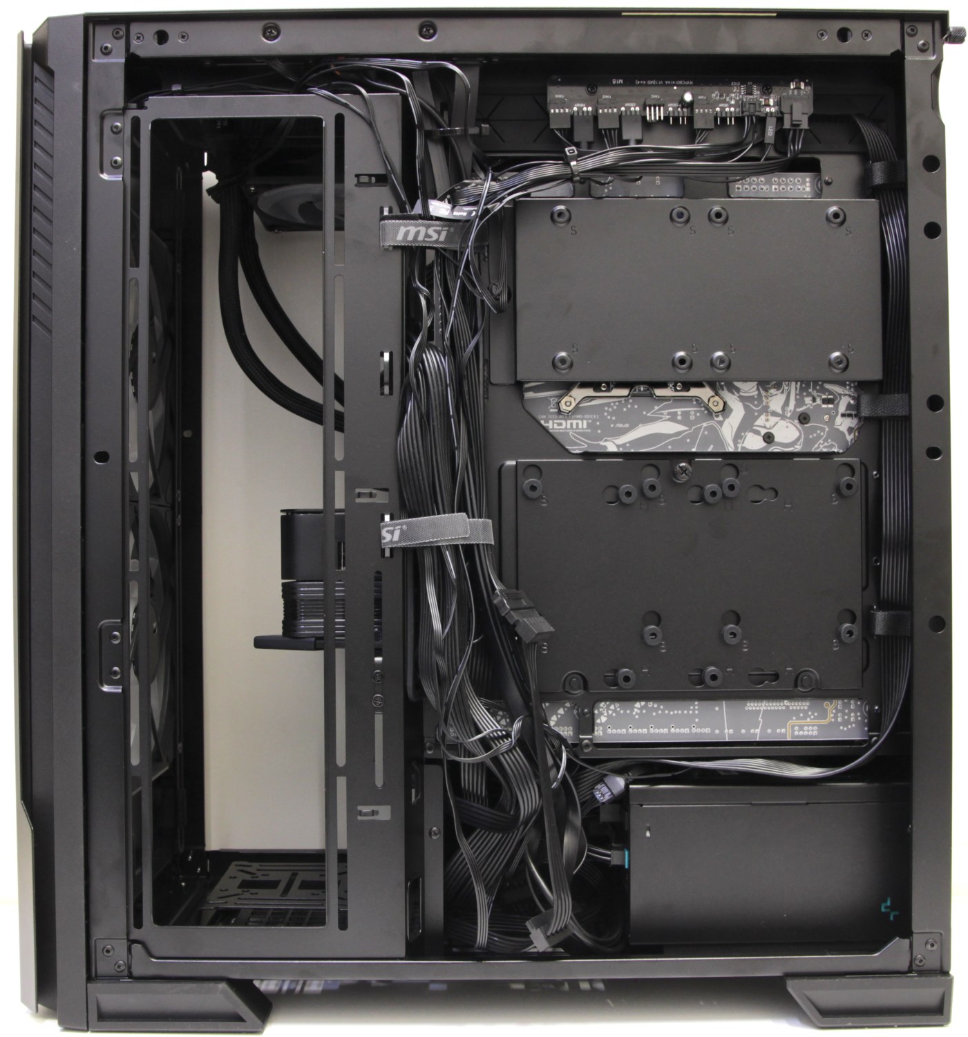 Корпус очень удобный для сборки и нет абсолютно никаких нюансов или подводных камней, с которыми пришлось столкнуться. Даже за правой стенкой всё отлично укладывается, и она легко закрывается потому, что пространства достаточно.