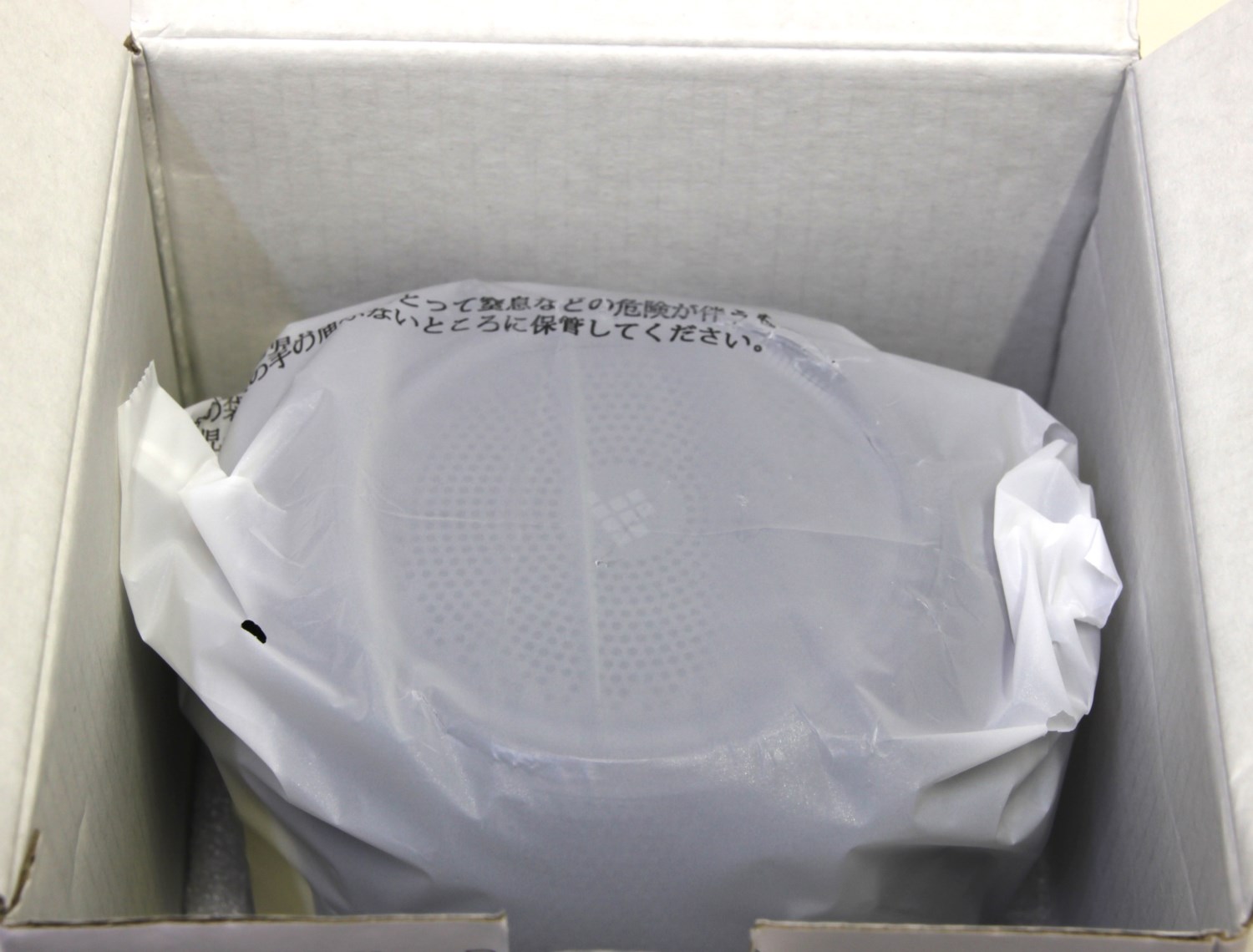 Под ней скрывается само устройство, которое стоит вертикально на лотке из белого вспененного полиэтилена. Где-то на дне можно обнаружить пакетик силикагеля, а сама колонка дополнительно упакована в белый пакет.