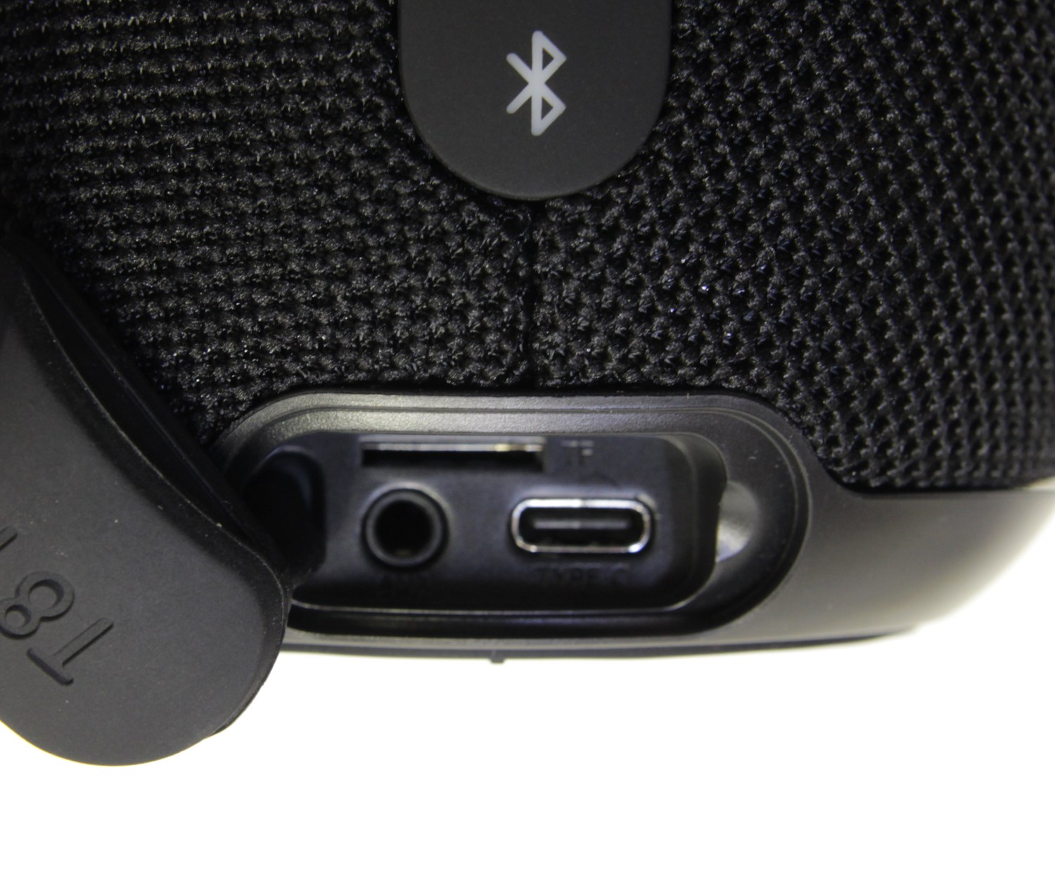 Также внизу можно найти резиновую заглушку, за которой скрываются разъёмы. Здесь есть слот для карт памяти microSD, 3.5 мм гнездо AUX и USB Type-C для зарядки. Кабель USB Type-C – USB Type-A есть в комплекте, а вот сам блок питания придётся искать самостоятельно.