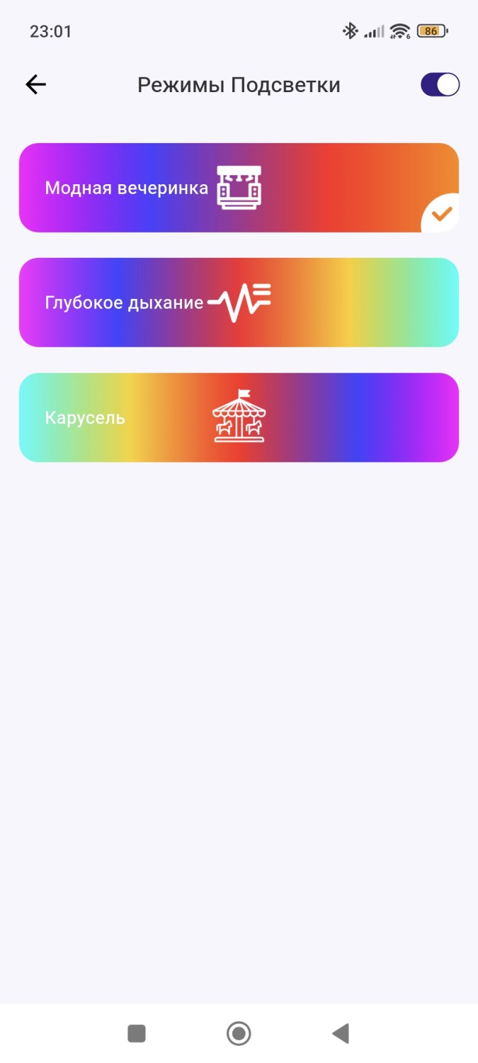 Здесь же можно выбрать эквалайзер. И ещё можно выбрать один из трёх режимов подсветки или отключить её.