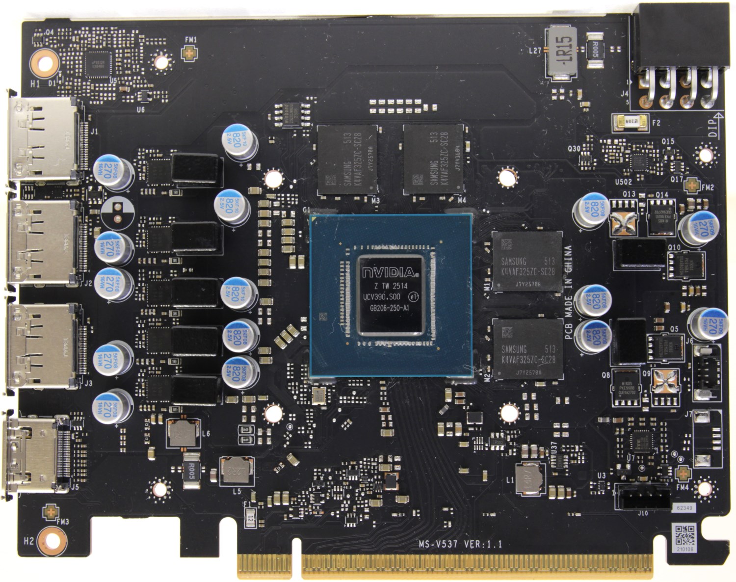 По центру размещен графический процессор NVIDIA GB206-250-A1, он же RTX 5060. Чип изготовлен на 14-й неделе 2025 года.