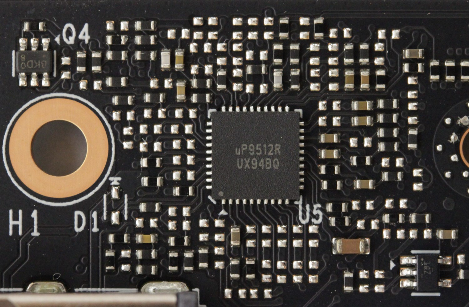 ШИМ-контроллер распаян спереди. Это та же самая микросхема uPI Semi uP9512R.