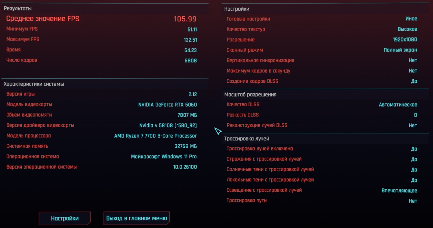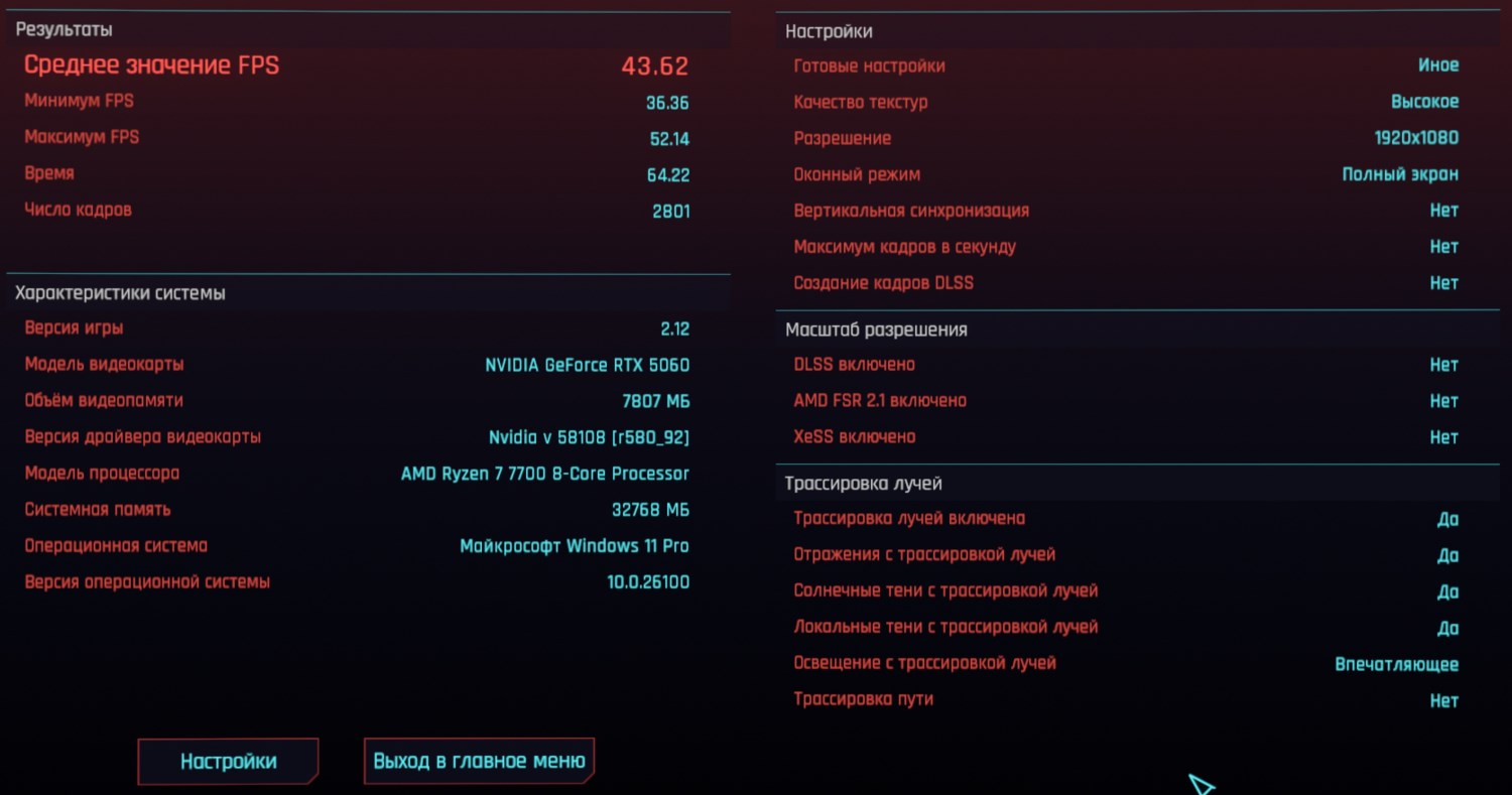 Cyberpunk 2077, FHD, трассировка ультра, DLSS, FG: