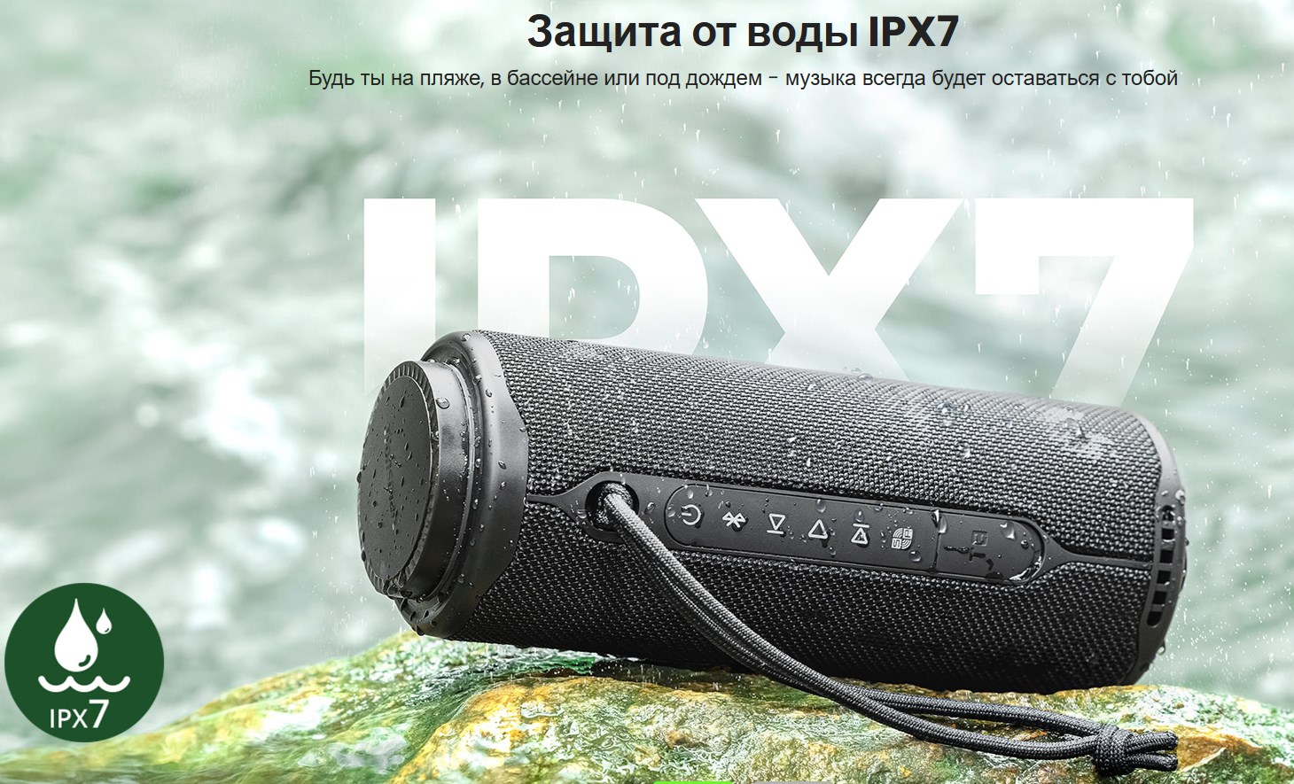 Устройство защищено по классу IPX7. В переводе на русский язык оно должно обеспечивать защиту при погружении в воду на 1 м на протяжении 30 мин. Так жёстко я его не проверял, но водичкой немного побрызгал. Корпус действительно герметичный и проклеен на соединениях. Про звучание я уже написал, и добавить мне нечего. В основном такие устройства берут не для прослушивания концерта фортепьяно с оркестром сидя у камина, а чтобы было мощно, зажигательно и звук «качал». Этого здесь вполне достаточно.
