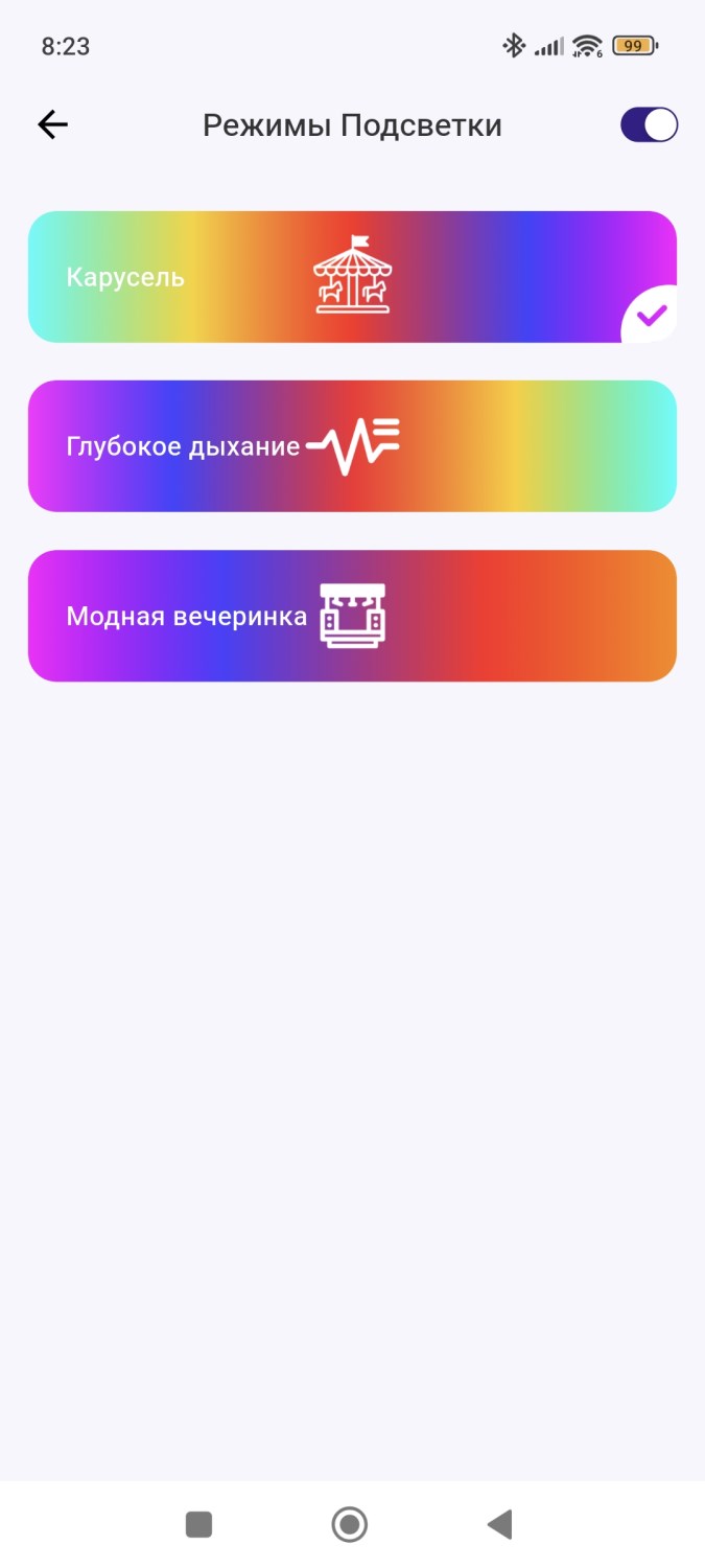 И ещё можно выбрать один из трёх режимов подсветки или отключить её.