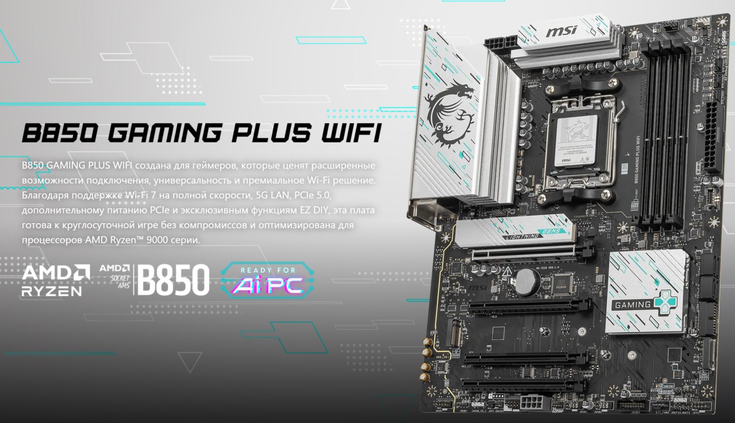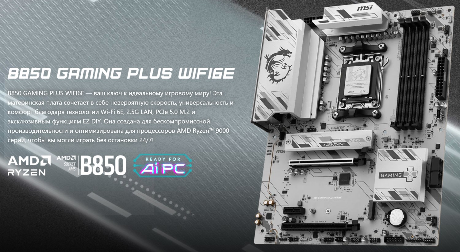 Дальше ещё дороже. Однако тут часть доплаты может быть за светлое исполнение. Материнская плата MSI B850 Gaming Plus WIFI6E не полностью белая, но близко к этому. Цвет – это уже на любителя и, скорее всего, такие найдутся, для кого это играет решающее значение. В плане Wi-Fi есть небольшая просадка, но в целом заменить адаптер – это не такая большая проблема, а вот поддержка PCI-e 5.0 – это шаг вперёд. Сейчас появилось достаточно много различных накопителей с этим интерфейсом и даже видеокарты наконец-то начали на него переходить.