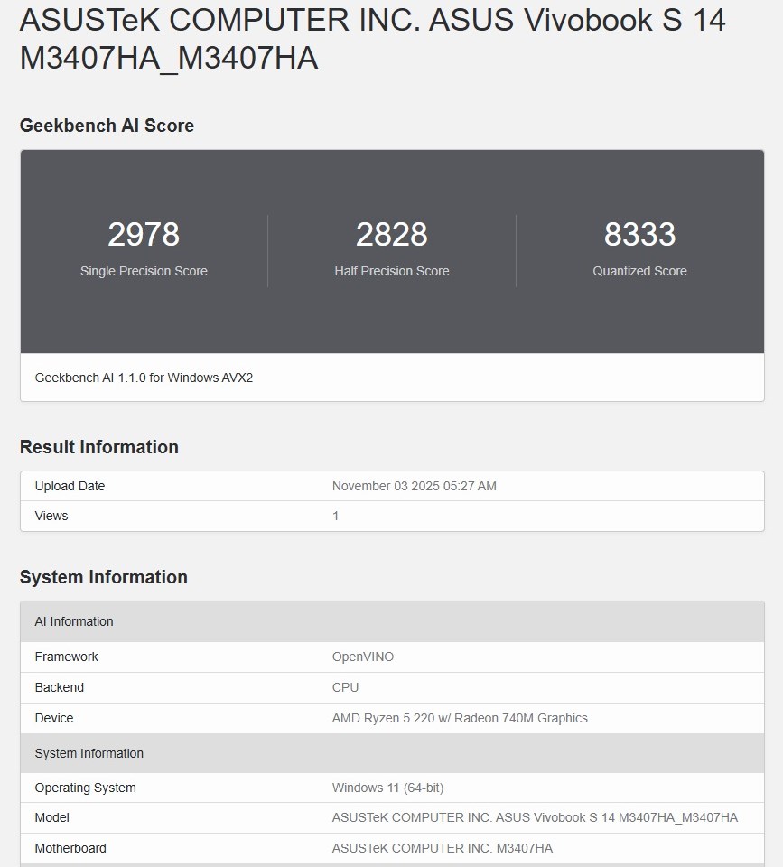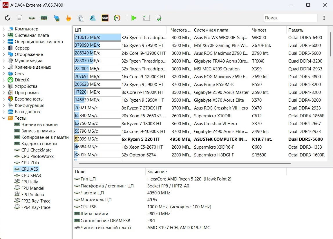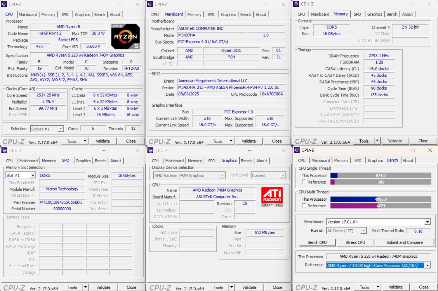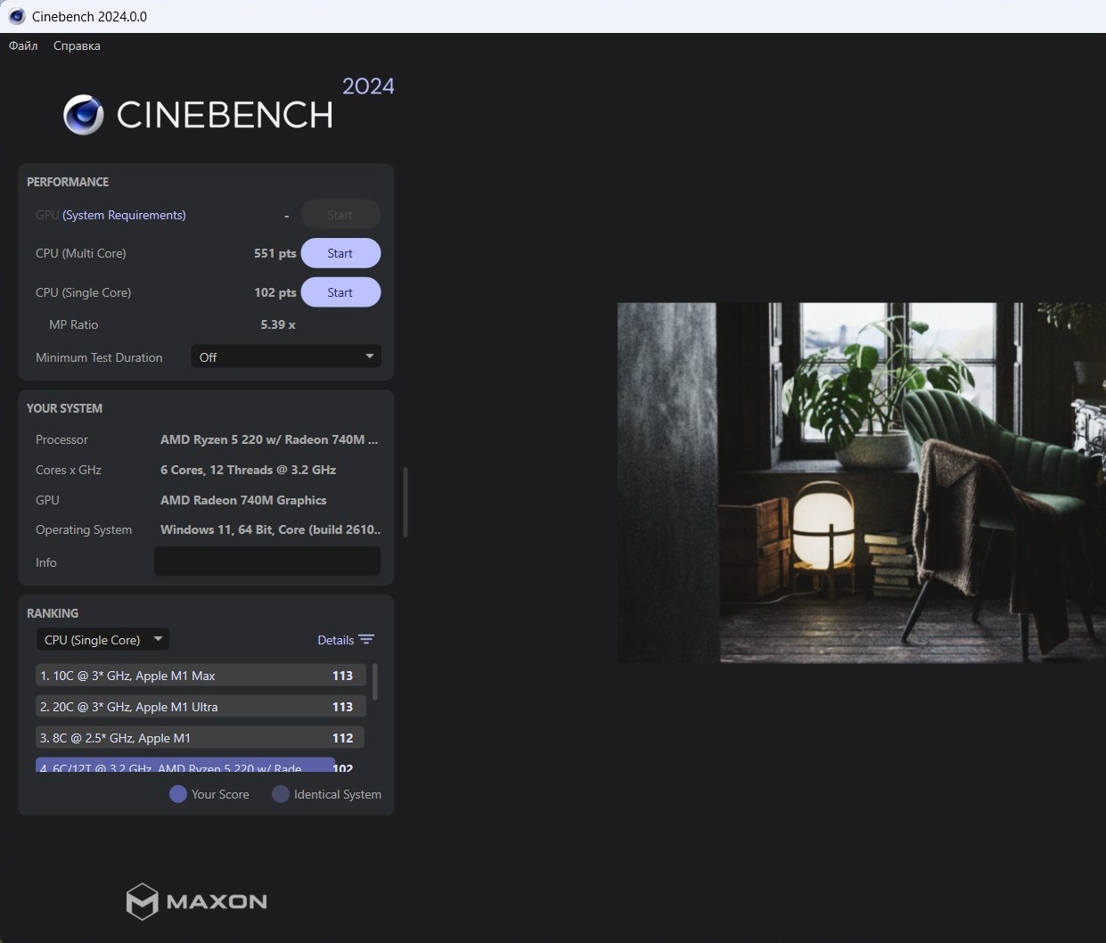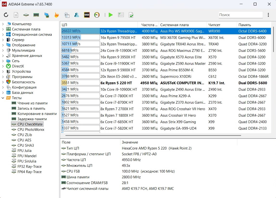 Первые вопросы могут возникнуть к платформе потому, что о процессоре AMD Ryzen 5 220, скорее всего никто ничего не слышал. Между тем это модель семейства Hawk Point, с двумя типами ядер: производительными и энергоэффективными. Причём тут не как у Intel, а отличий между ними по минимуму. В основном они сводятся просто к кэшу, а так это всё те же ядра на архитектуре Zen4.